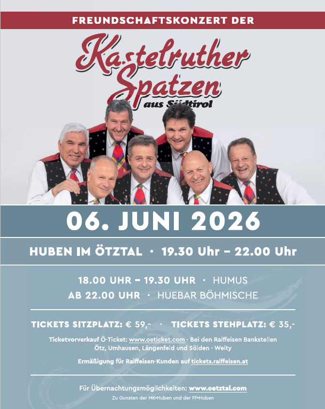 Auch in diesem Jahr findet wieder ein Freundschaftkonzert der bekannten Kastelruther Spatzein in Huben statt.