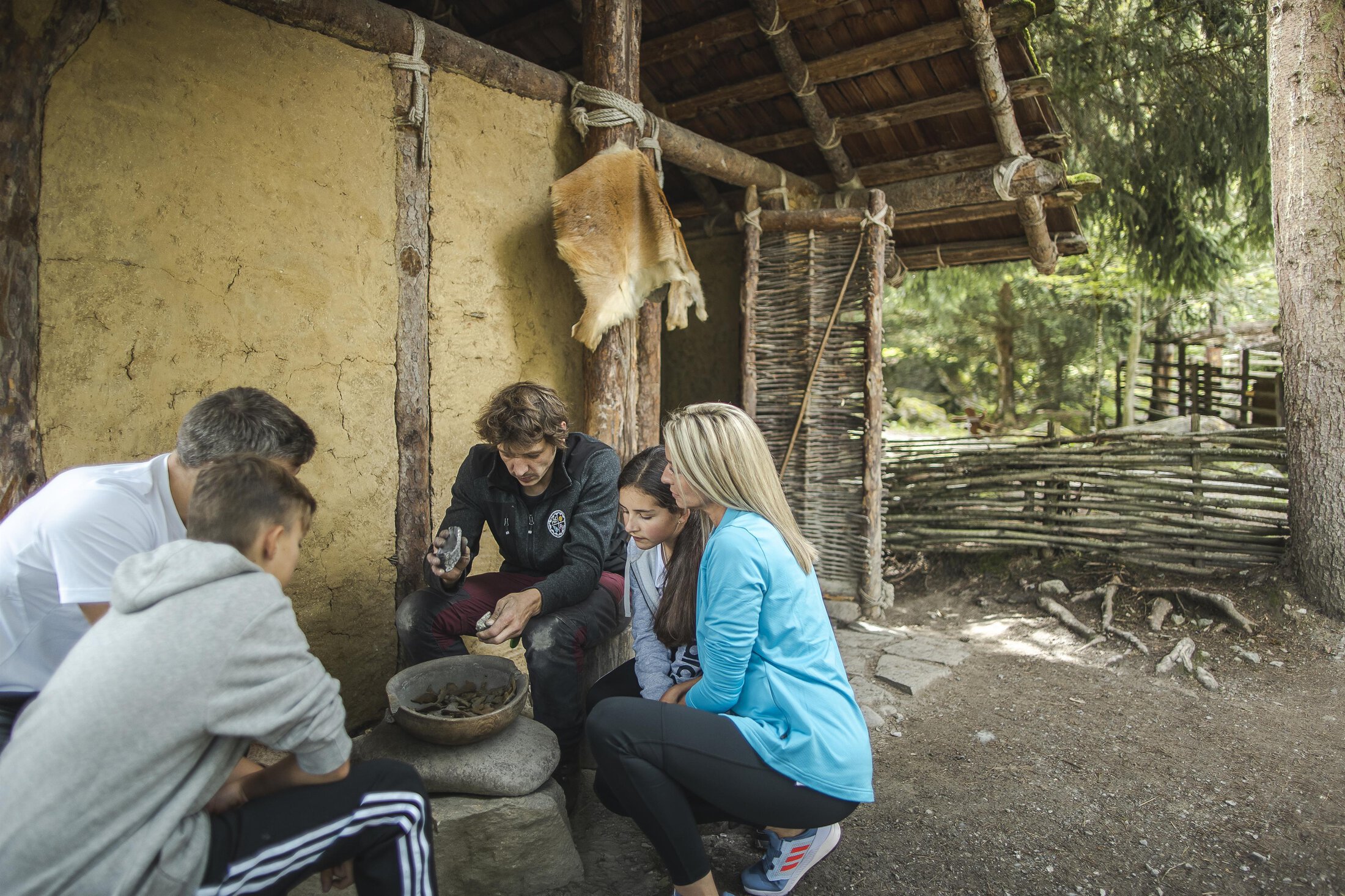 - Dorfleben von 10:00 bis 14:00 Uhr: Präsentation steinzeitlicher Handwerkstechniken
