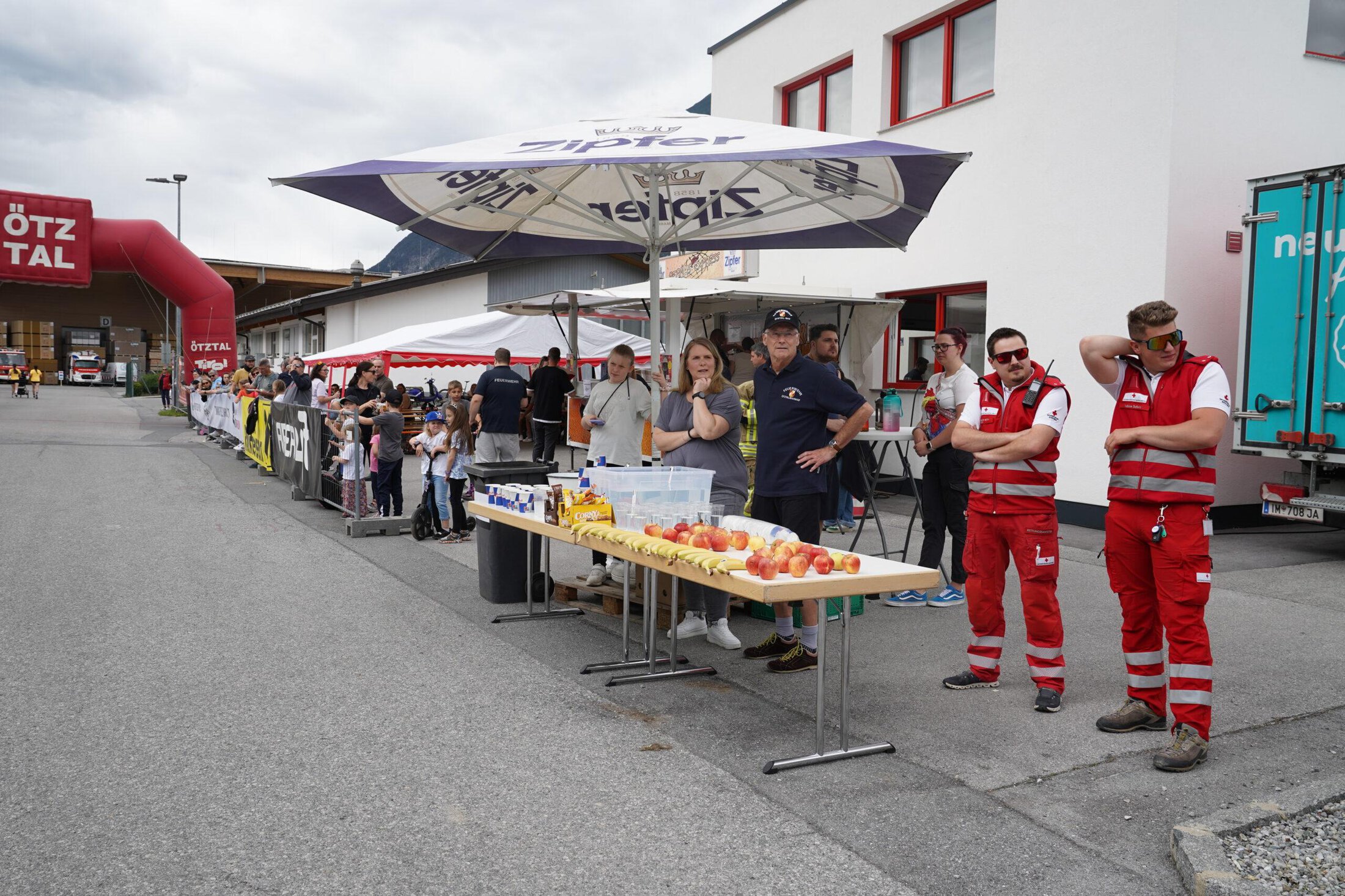 Entlang der Strecke werden zwei Labe-Stationen bereitgestellt, auch im Start-Ziel-Bereich vor dem Feuerwehrhaus Ötztal-Bahnhof ist für Speis und Trank gesorgt.