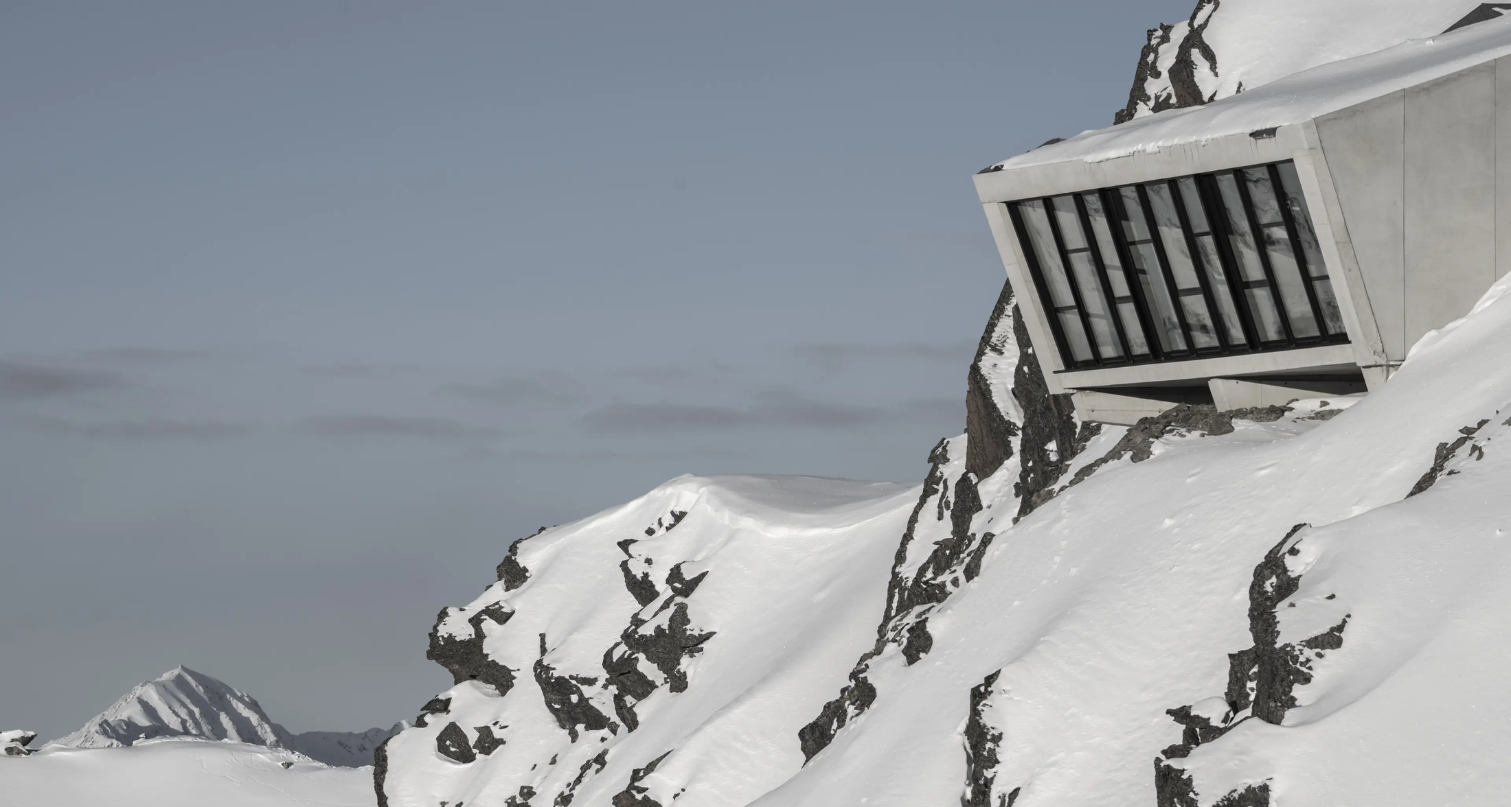 Dass neben dem ice Q noch eine weitere Bond-Besonderheit in den Gaislachkogl einziehen wird, war über das letzte Jahr hingegen kein Geheimnis. Das 007 ELEMENTS ist eine cineastische Erlebniswelt gespickt mit futuristischen Sinneserlebnissen, die von ice Q-Architekt Johann Obermoser direkt in den Berg integriert wurde. Es ist ein archaisches Gebäude aus Beton, Stahl und Glas, in dem eine Temperatur von 1°C herrscht, um den Permafrost nicht zu beeinflussen. Man muss sich also warm anziehen, wenn sich die großen schwarzen Stahltüren öffnen, man eintaucht in die filmreife Kulisse und von einem Kubus in den Nächsten schreitet.