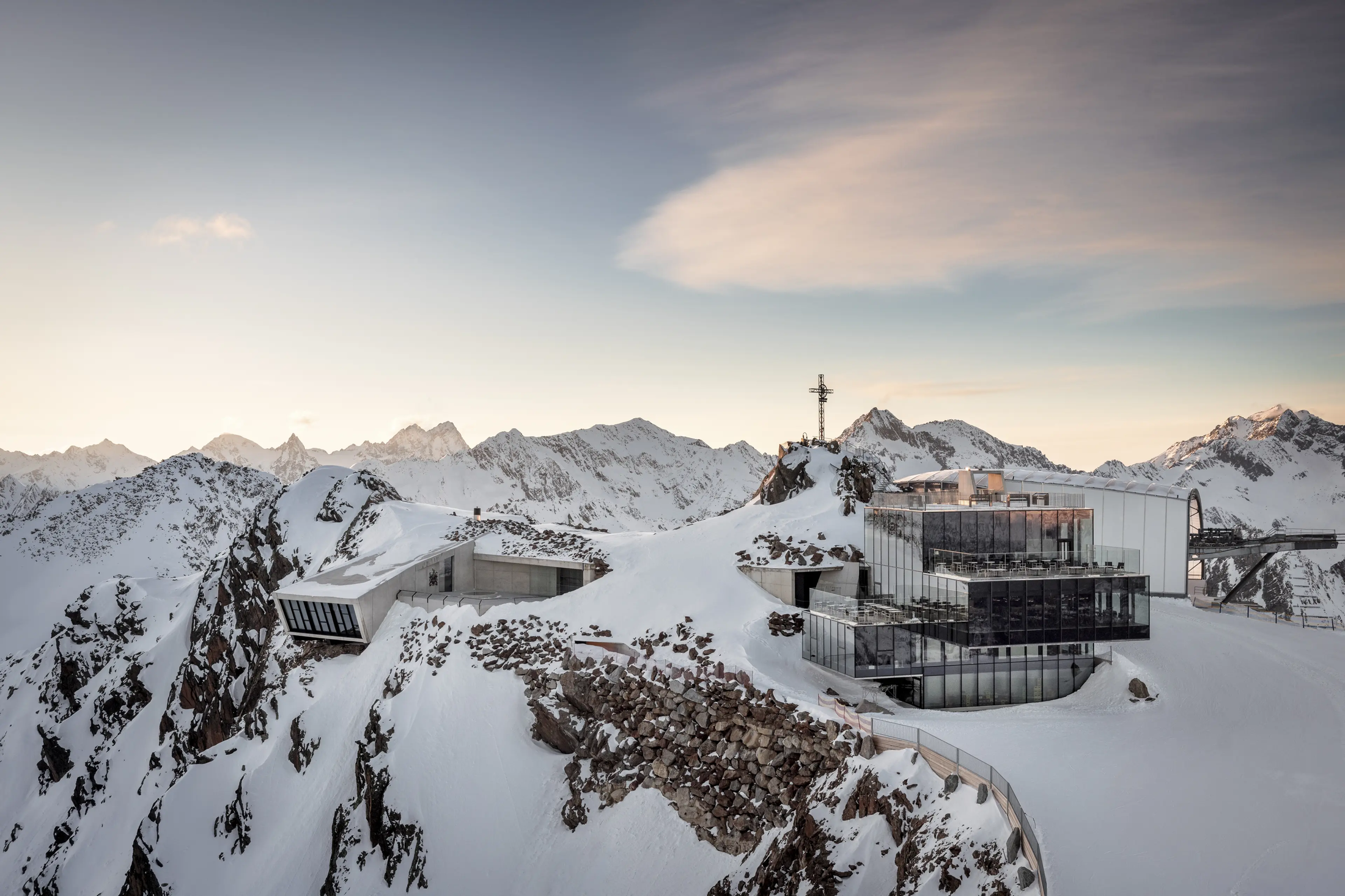 Als Gassner auf das ice Q stieß, dieses klare, kubische Gebäude auf dem 3048 Meter hohen Gaislachkogl-Gipfel, hatte er seine hollywoodreife Alpenkulisse gefunden. Und so nistete sich 2015 eine 500-köpfige Hollywood-Crew in Sölden ein. Das Hintere Ötztal wurde zum neuen 007-Drehort – und alles war top secret.