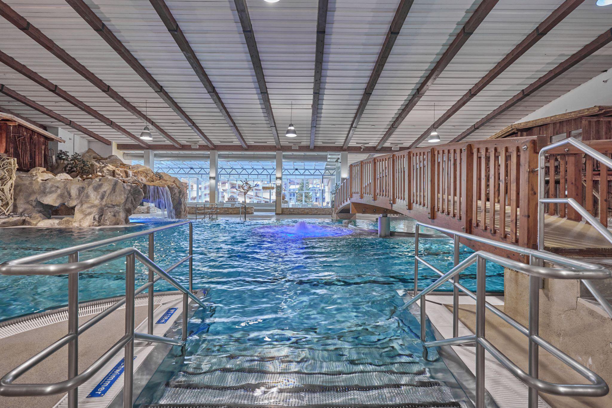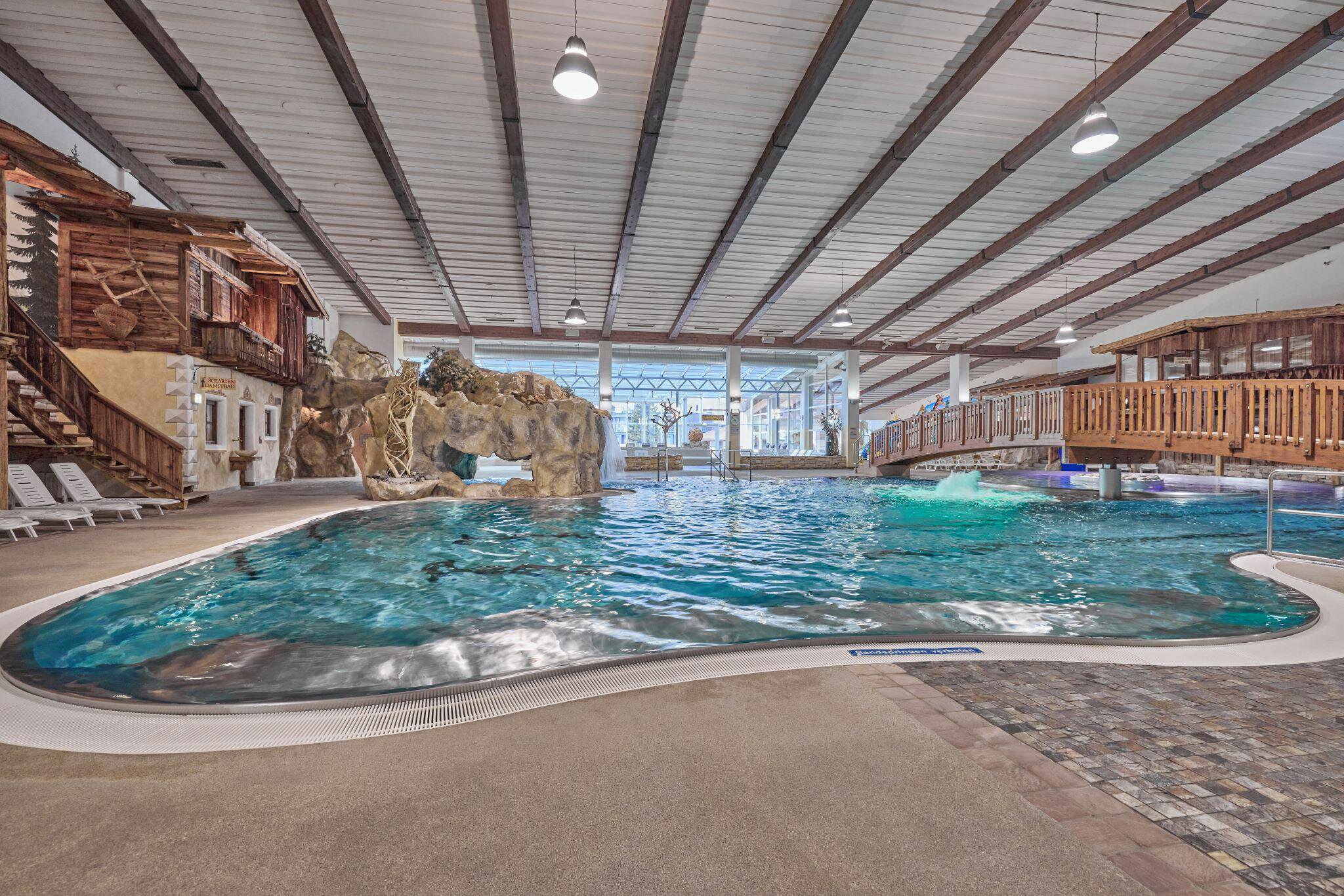 Wellness, die Sie sich leisten können. Das Erlebnisbad in der Freizeit Arena ist ideal zum Ausspannen. Ob Sie gerade von einer ausgiebigen Wanderung oder von einem zünftigen Skitag kommen und sich die Unterwassermassagedüsen auf die müden Muskeln strahlen lassen, oder einfach den ganzen lieben langen Tag ein Sonnenbad auf der Terrasse nehmen, alles ist möglich.