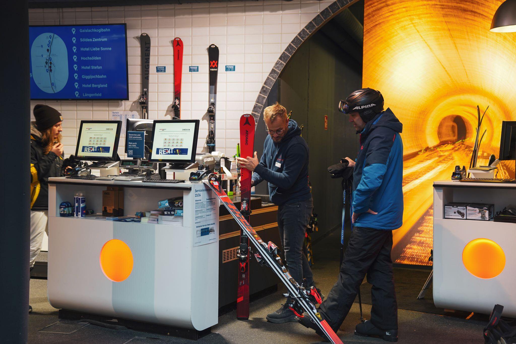 Shopleiter Reini und sein Team stehen bereit, um dich bestens zu beraten. Egal, ob du nach den perfekten Ski, den idealen Skischuhen oder stylisher Skibekleidung suchst – wir haben die Expertise, um dir bei deinen Entscheidungen zu helfen.