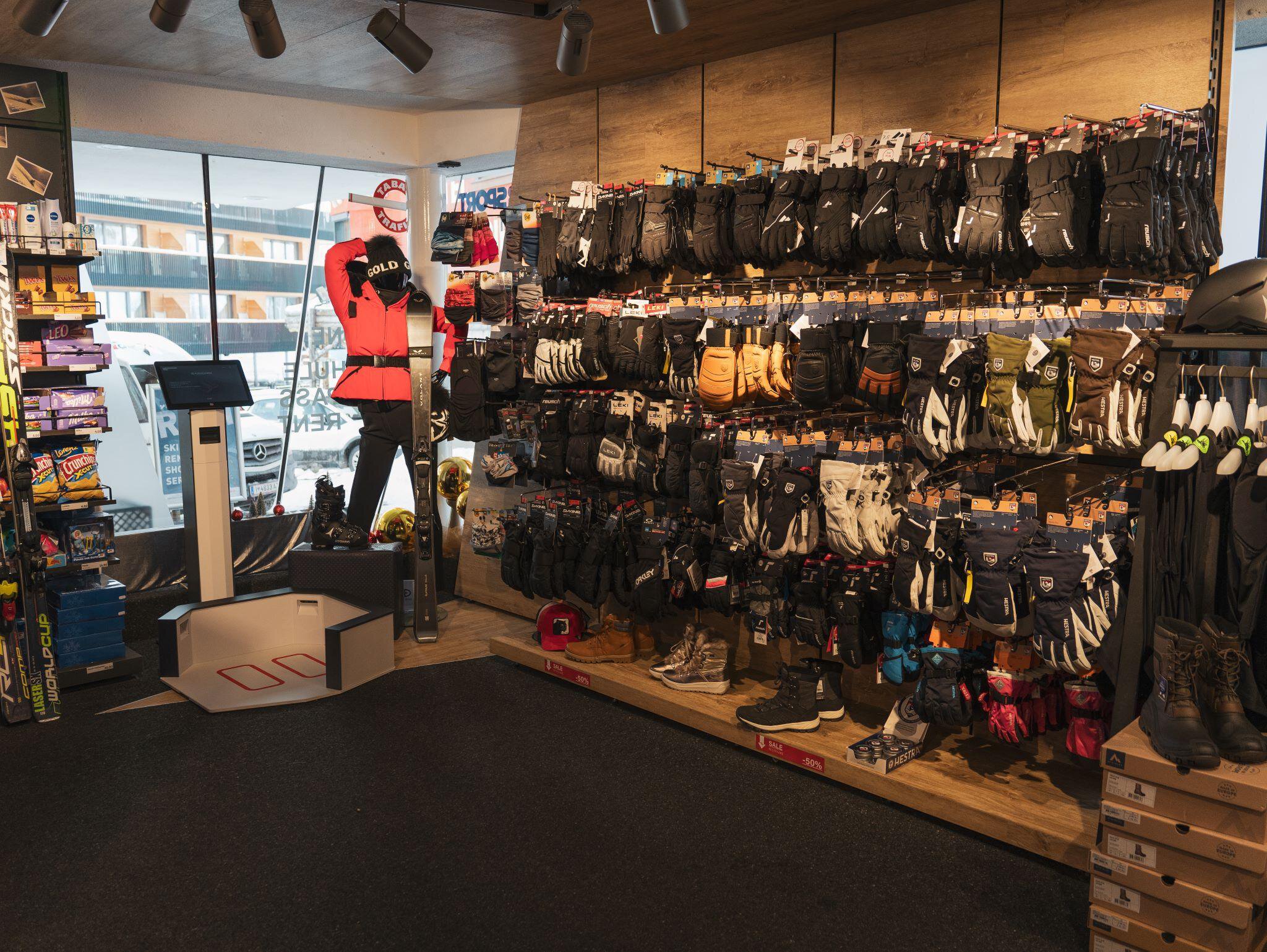 All-in-one feeling im kleinen Sportshop mit großen Möglichkeiten: Skiverleih und -verkauf, Skischuhfitting, Skipässe, Skikursbuchung, Tabaktrafik, Getränke und Snacks.