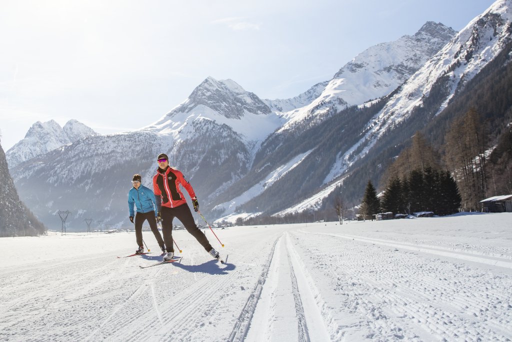 Der nordische Sport macht dem typischen Skitag Konkurrenz: keine Menschenmengen oder Wartezeiten, dafür aber viel Natur und Individualität. Die großzügigen Schleifen entlang des weiten Talbodens in Längenfeld zeigen ein ganz anderes Ötztal – einladend und sanft. Du suchst das ultimative Naturerlebnis? Dann musst du unbedingt entlang des Fischbaches im schneereichen Weiler Gries auf den schmalen Brettern dahingleiten. Die über 50 km langen Loipen wurden mit dem Tiroler Loipen-Gütesiegel ausgezeichnet und sind kostenfrei zu nutzen.