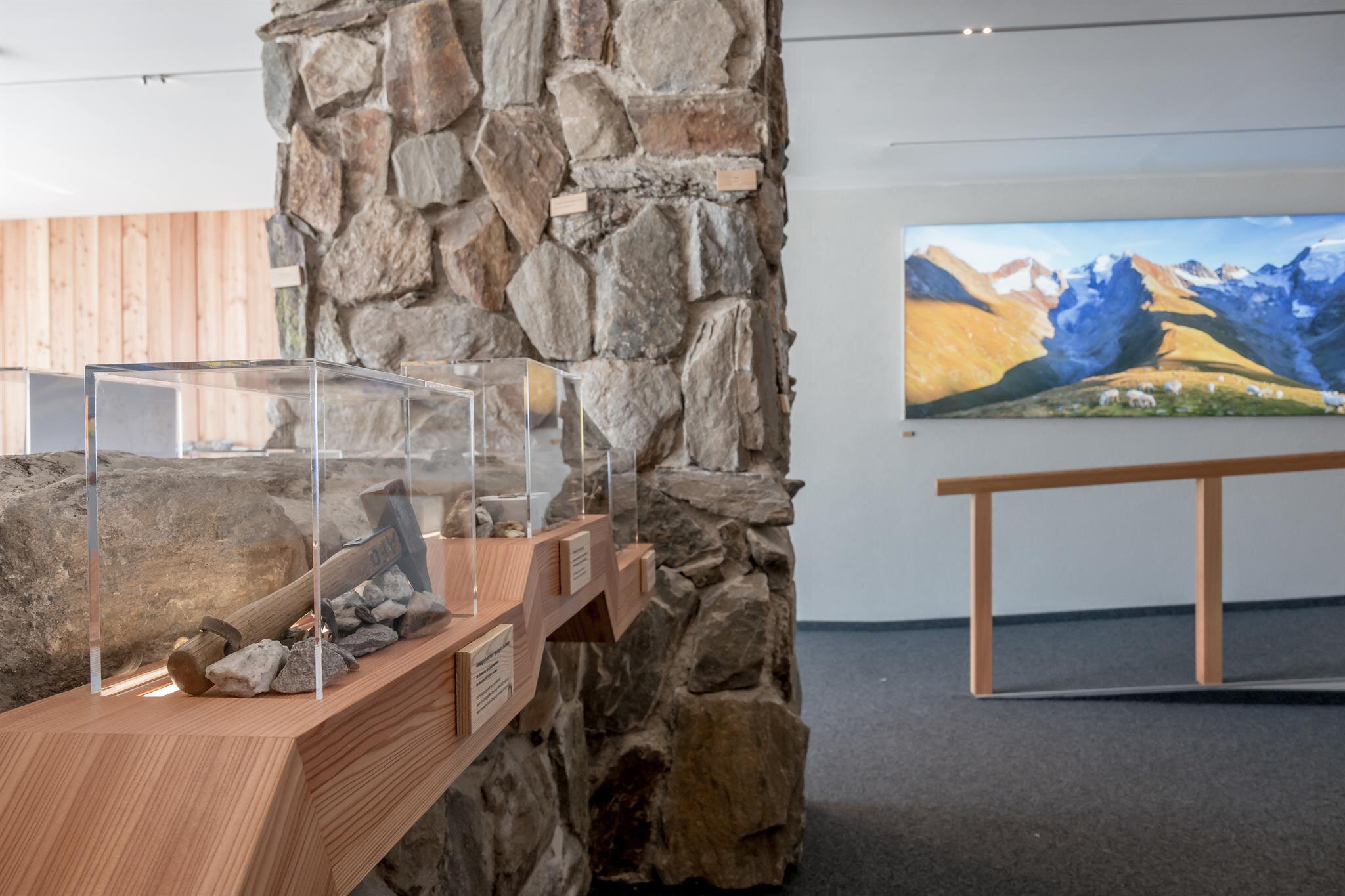 Auf 2.670 m im Souterrain der Hohen Mut Alm befindet sich diese 135 m2 große, interaktive Naturpark-Ausstellung. Ein Blick genügt, um das hier omnipräsenten Thema „Gletscher“ zu spüren. Die visuellen Eindrücke werden in der Ausstellung geschickt mit Infos zur Gletscherforschung und der hochalpinen Tier- und Pflanzenwelt verknüpft. Exklusive Exponate, wie ein versteinertes Steinbockhorn, erweitern das Spektrum und ein echter „Minigletscher“ kühlt erhitzte Gemüter.