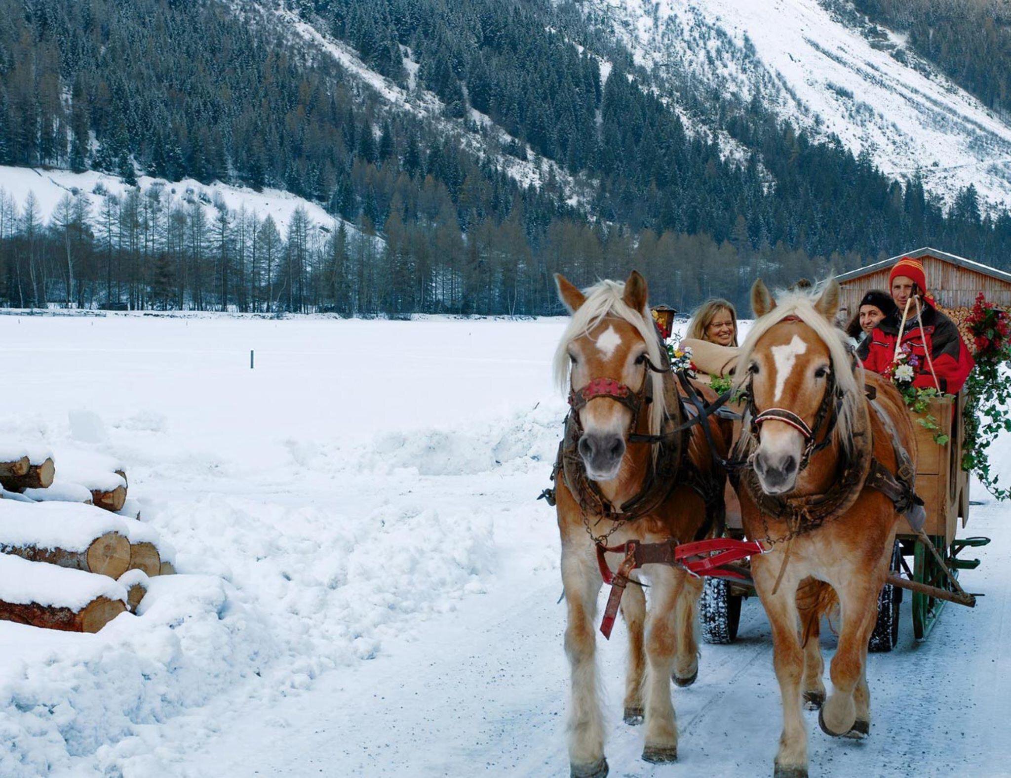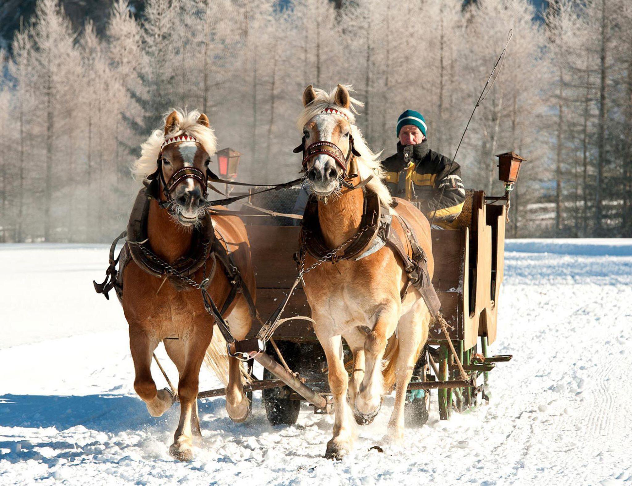 Was gibt es Schöneres als eine romantische Kutschenfahrt durch die verschneite Winterlandschaft.