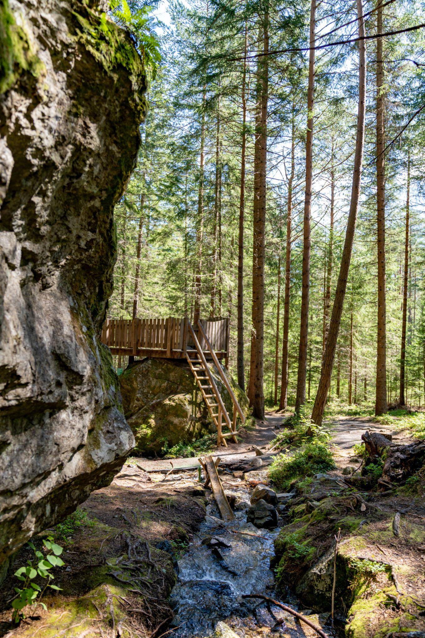 Gleich neben dem äußerst ruhig gelegenen Winkelbergsee verbirgt sich im Wald ein kleiner Natur-Wasserspielplatz für Kinder.