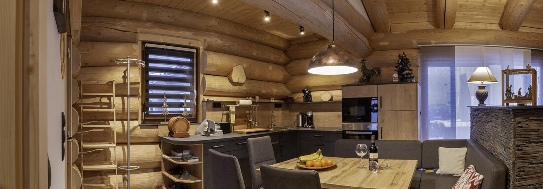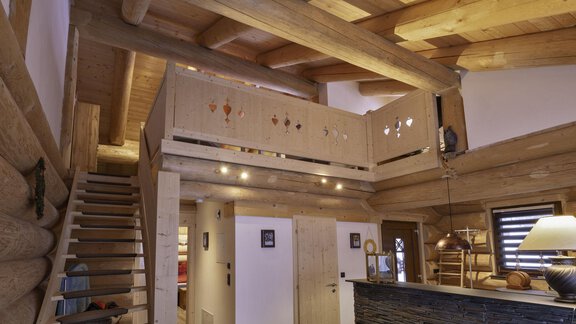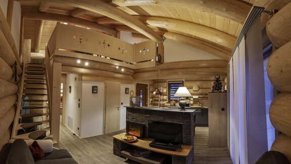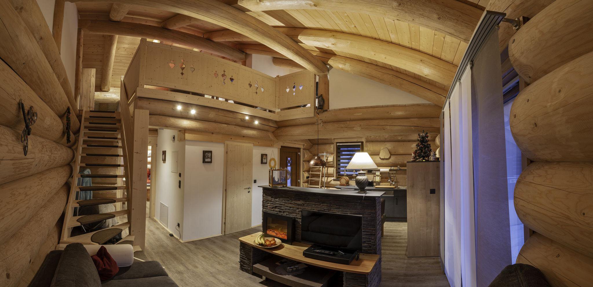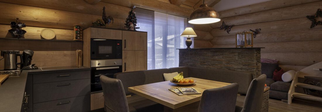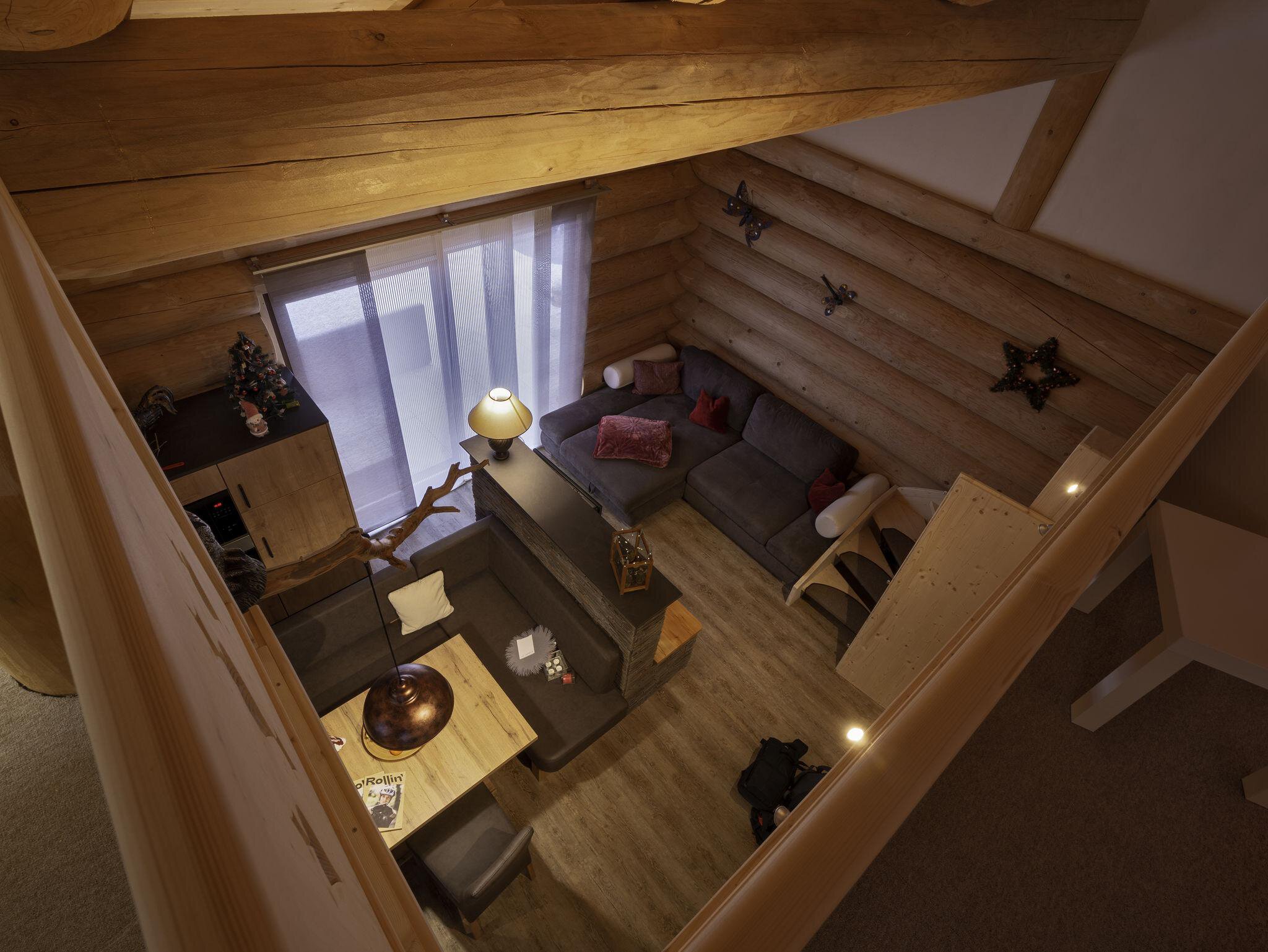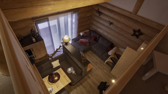 Das Appartement im Blockhaus mit ca. 60 m² verfügt über eine Wohnküche, Badezimmer und zwei getrennte Schlafzimmer in der Galerie.