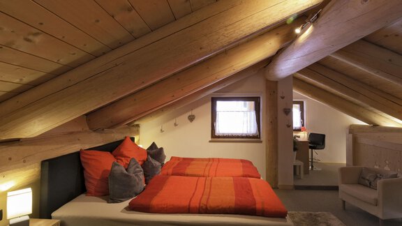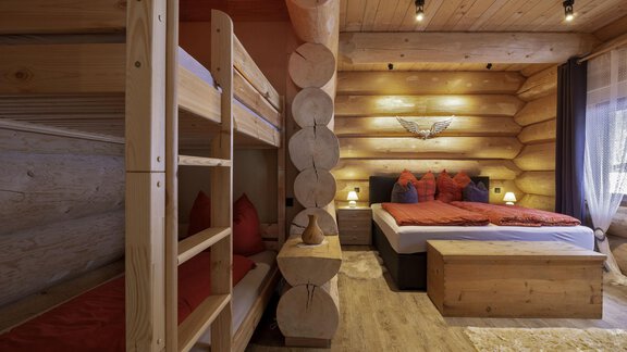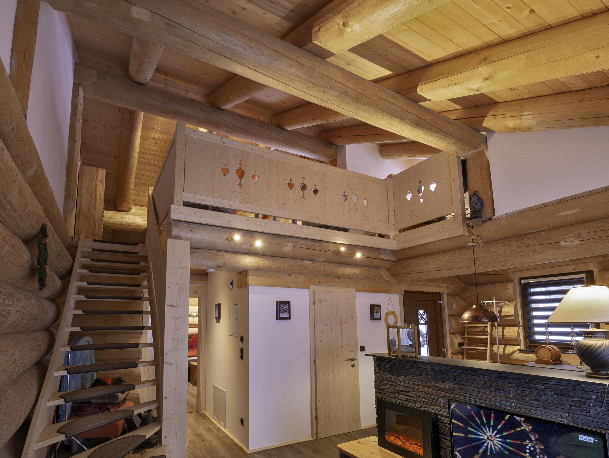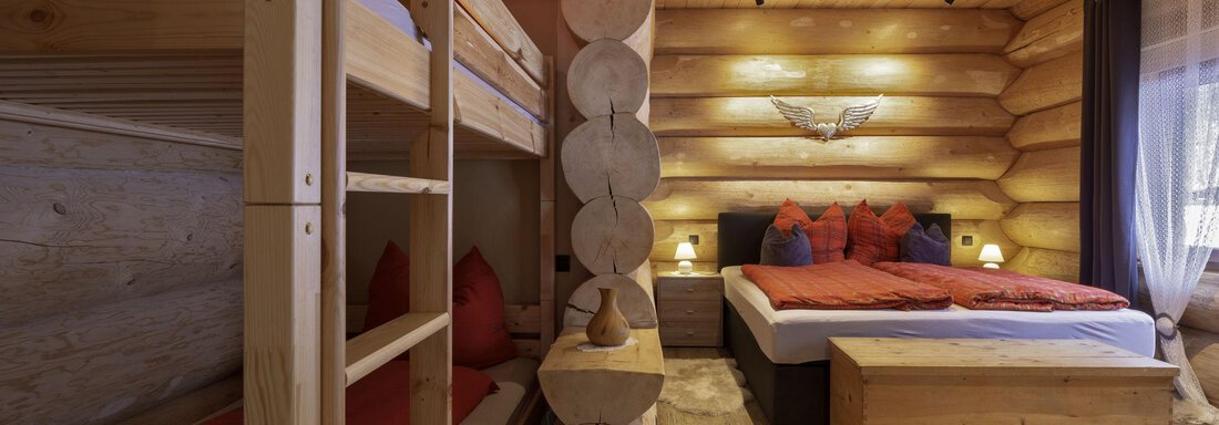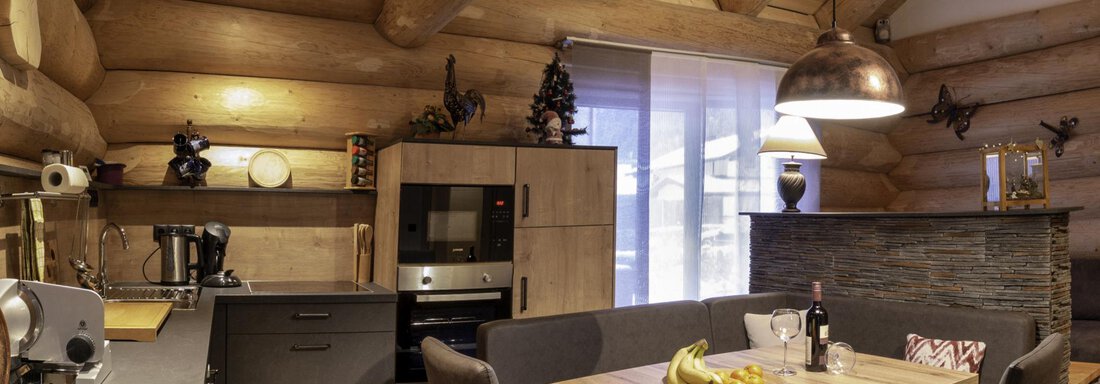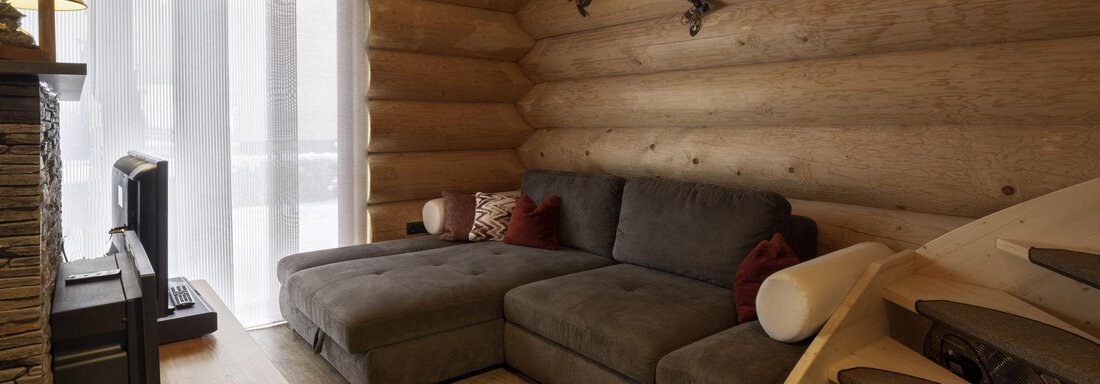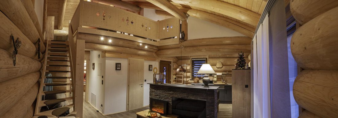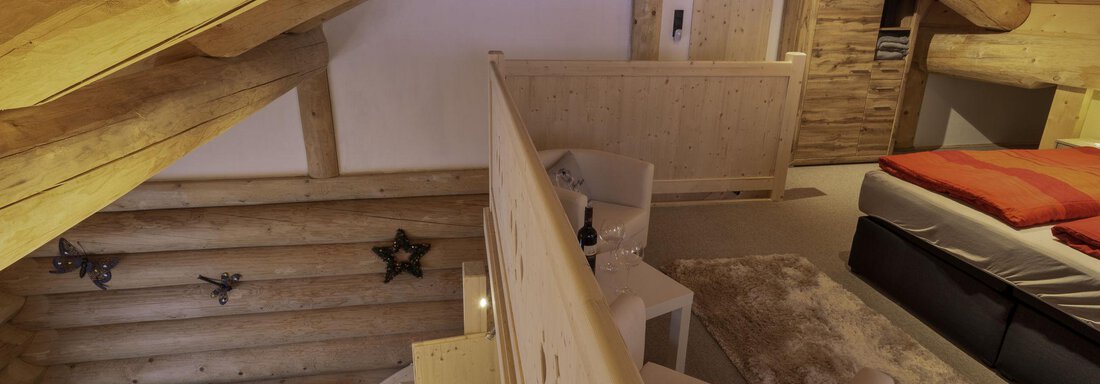 Das Appartement im Blockhaus mit ca. 60 m² verfügt über eine Wohnküche, Badezimmer und zwei getrennte Schlafzimmer in der Galerie.