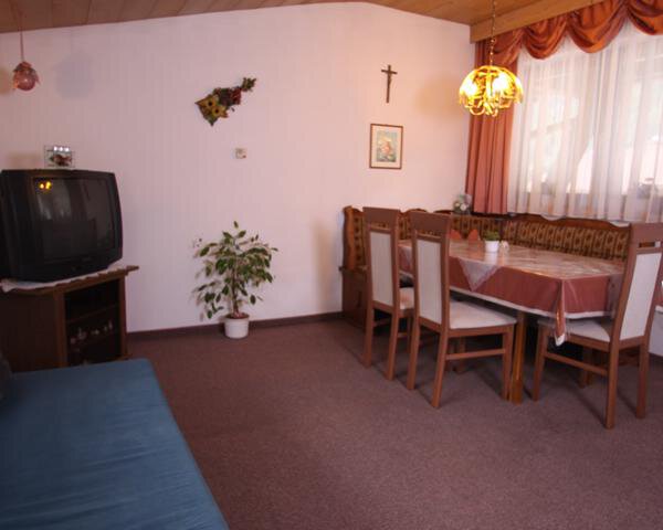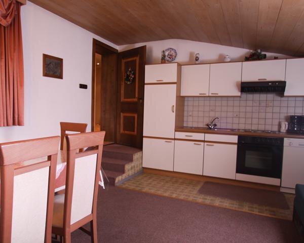 Die 3-Zimmer-Wohnung (80 m²) für 6 Personen liegt im 1. Stock: 2 Schlafzimmern (1 DZ, 1 DZ mit Einzelbett), Wohn/Schlafraum mit Bettcouch, Eßecke für 8 Personen, Küchenzeile (4 Platten, Backofen, Geschirrspüler, Kaffeemaschine, Wasserkocher, Toaster). Bad mit Dusche, separates WC. Südbalkon. Die Wohnung ist komplett ausgestattet (Handtücher, Bettwäsche, Küchenausstattung) und verfügt über Sat-TV und Internetzugang (W-LAN, exklusive). Die Schlafzimmer wurden 2011 komplett renoviert.