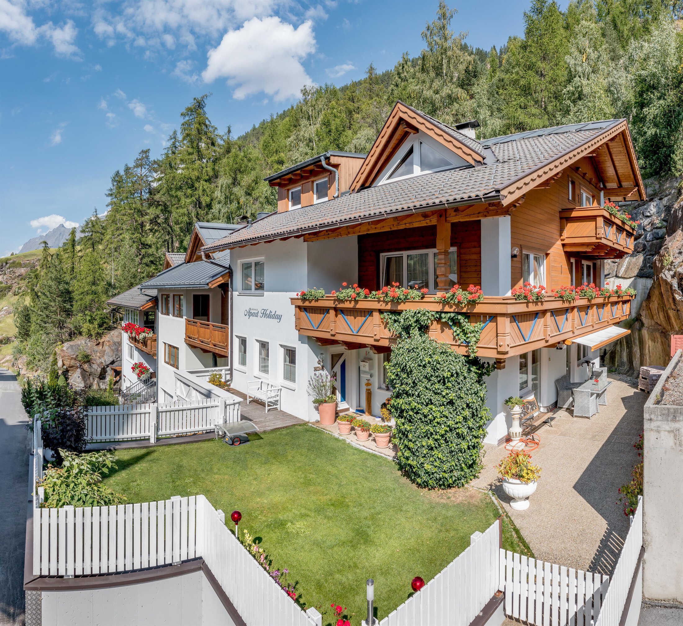 Freuen Sie sich auf Entspannung und Erholung mit Tiroler Chic im Appart Holiday in Sölden mit unserer Ferienwohnung. Verbringen Sie Ihren Urlaub da, wo auch Ihre anspruchsvollen Ötztaler Gastgeber wohnen. Das Appart Holiday liegt etwas oberhalb vom Zentrum. Die Gaislachkoglbahn und die Restaurants liegen nur 1 km vom Haus entfernt, der Supermarkt nur 200 m und die Skibushaltestelle 50 m.