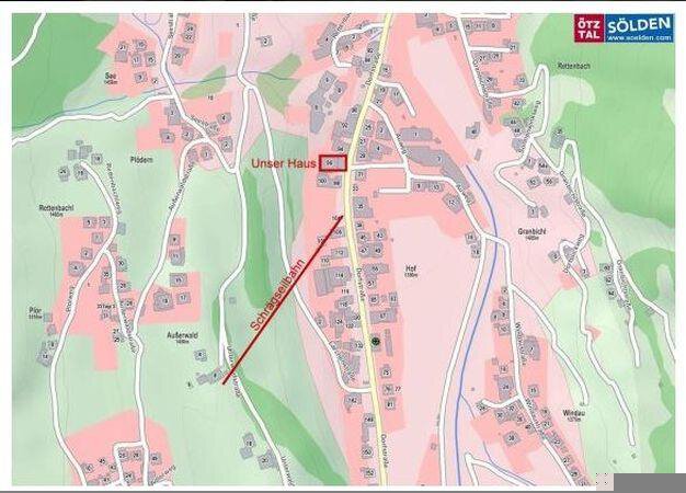 Anreise: Richtung Sölden - im Zentrum von Sölden auf der rechten Straßenseite gegenüber dem Hotel Hubertus - direkt an der Sparkasse angebaut.