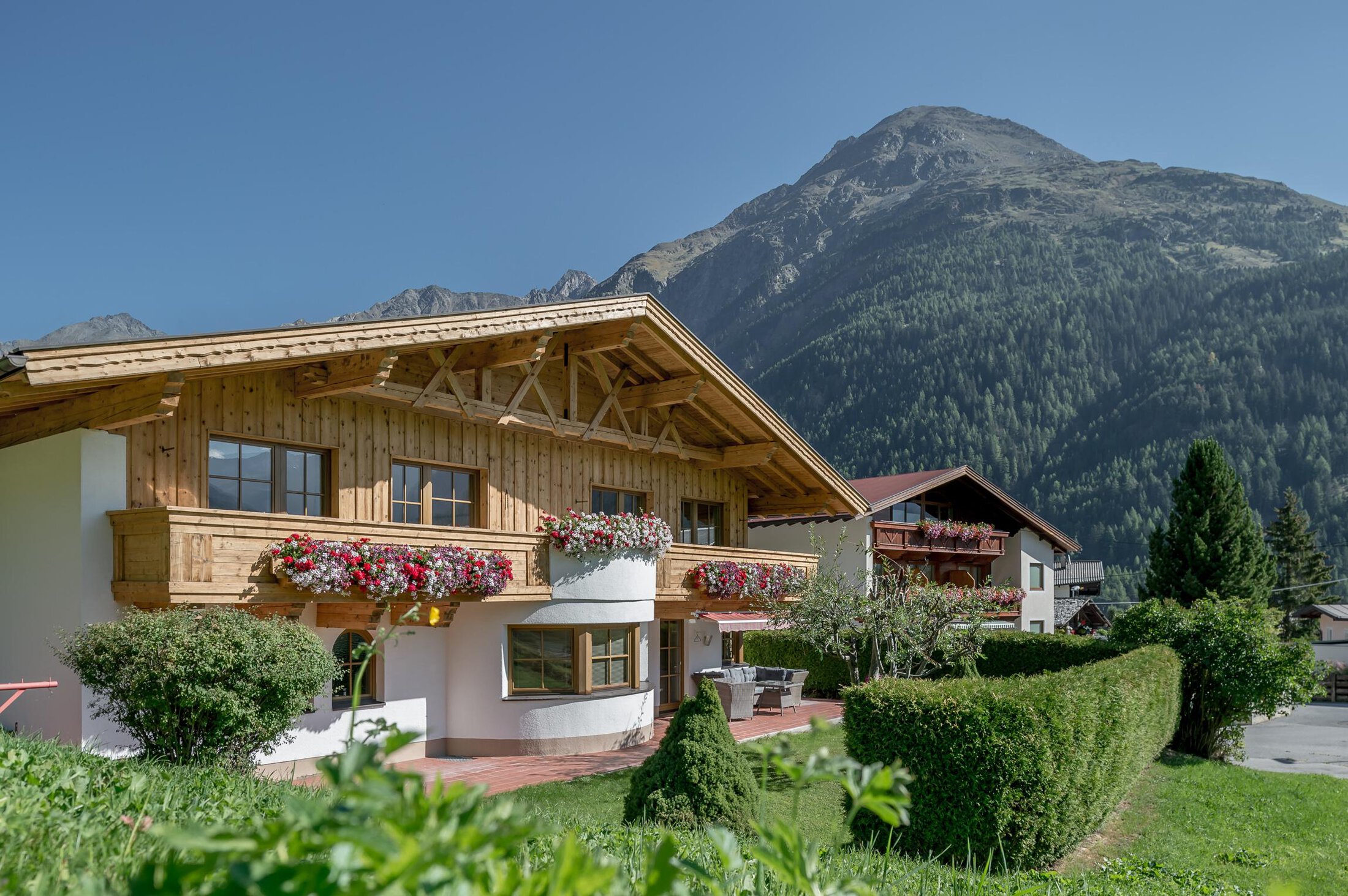 "Skifahren bis vor die Haustüre." Unser im Tiroler Stil erbautes Appartementhaus mit 4 Edelweiß, liegt oberhalb von Sölden in einer ruhigen, sonnigen Lage. Skischule und Apres-Ski befinden sich in ca. 150 m Entfernung. Sie können mit den Skiern bis zum Skikeller vom Haus fahren. Pizzeria und Restaurants sind in direkter Umgebung.