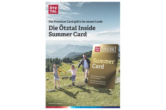Inklusive im Sommer: kostenfreies Upgrade zur Summer Card - mehr Spaß, mehr Abenteuer, mehr Urlaub! Viele Freizeiteinrichtungen wie z.B. Sommerbergbahnen, Schwimmbäder, öffentliche Verkehrsmittel, Museen, uvm. sind ab dem 2. Urlaubstag im Zimmerpreis INKLUSIVE. Bitte den Gültigkeitszeitraum beachten. Alle Infos unter https://www.oetztal.com/de/oetztal-inside-gaestekarten/summer-card/partner