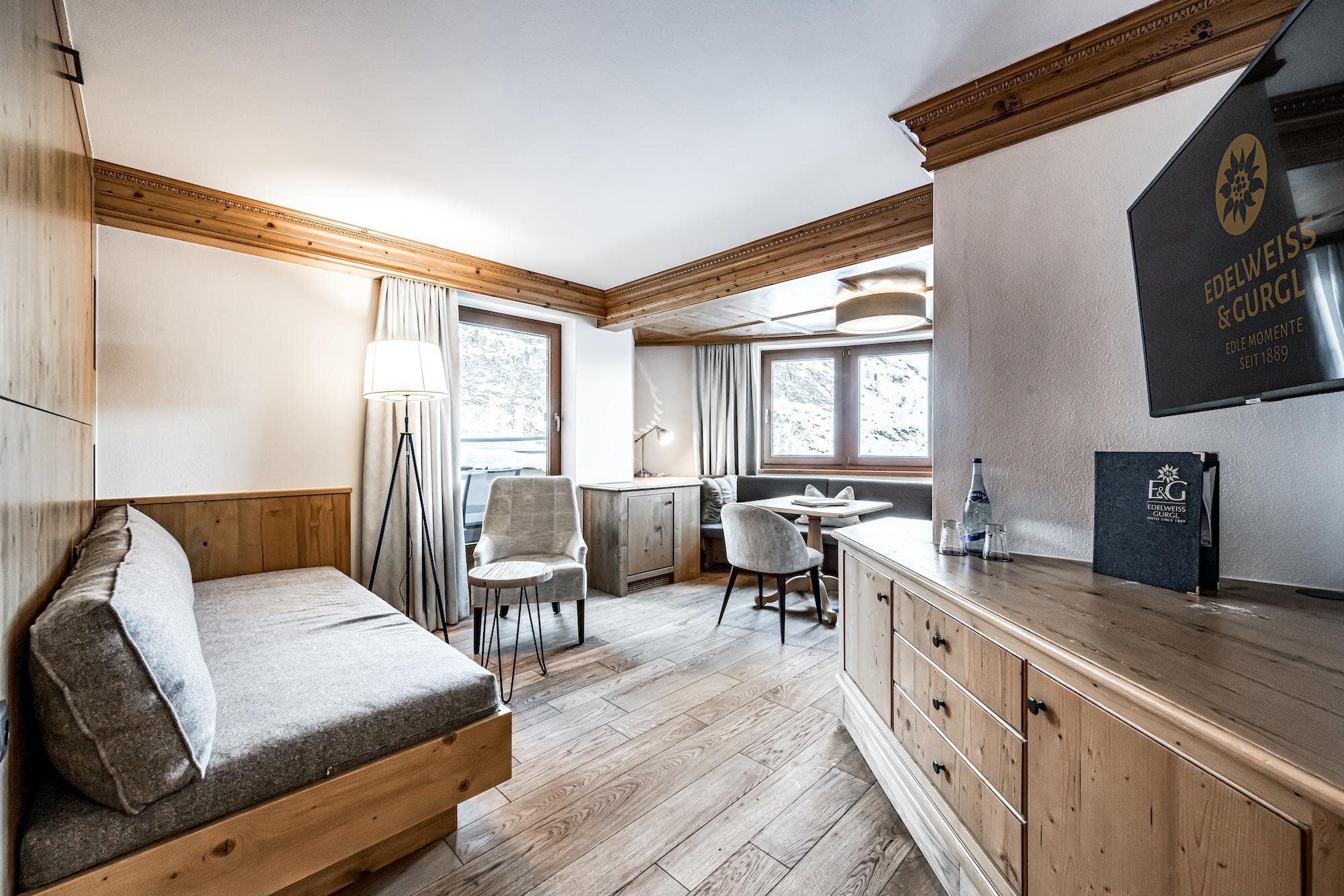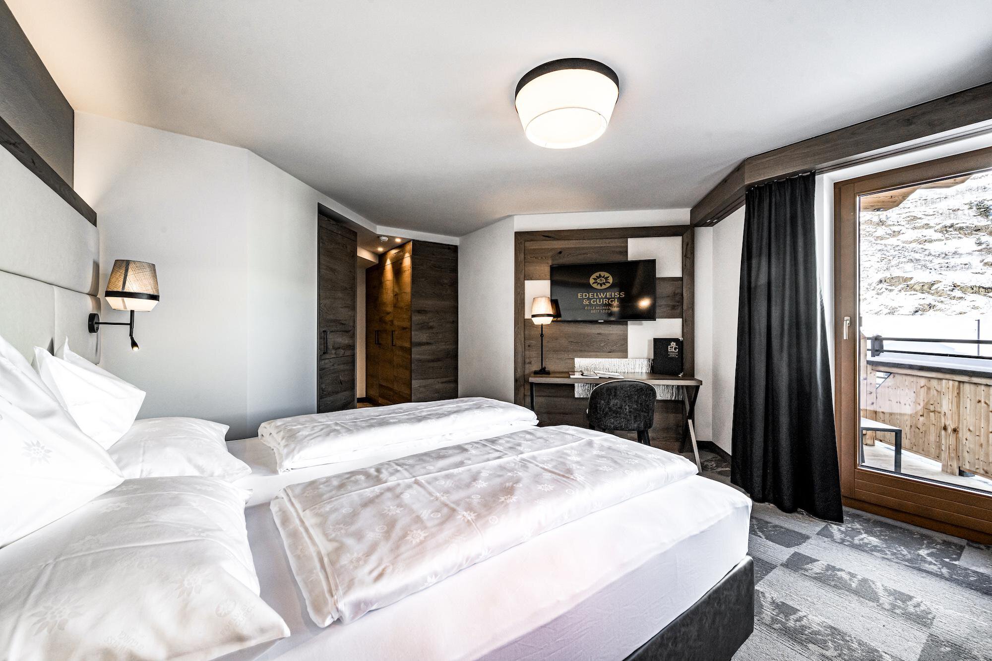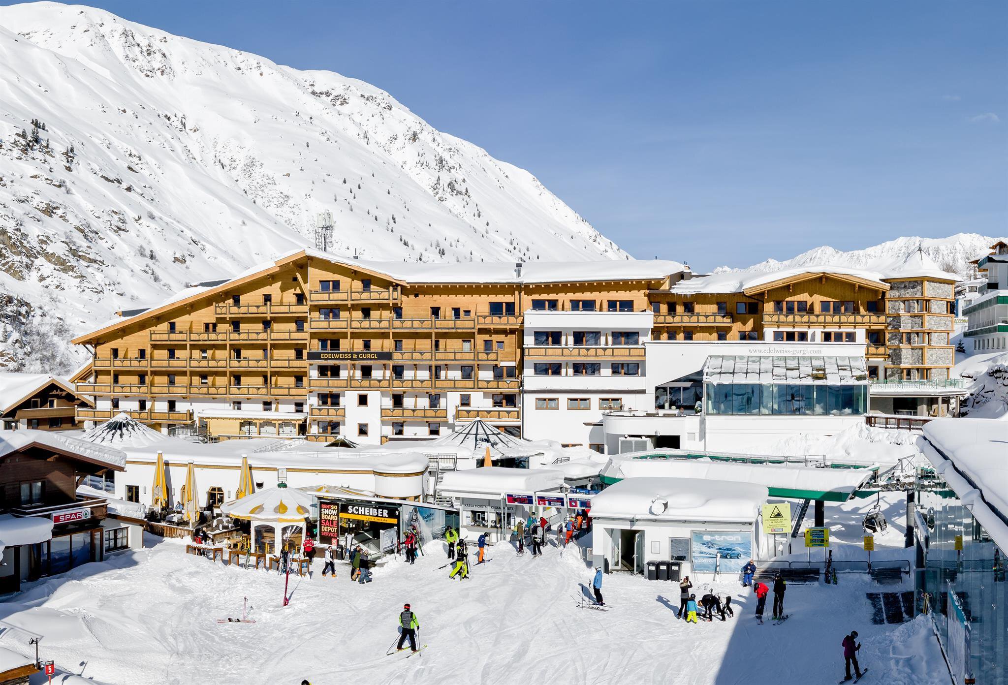 Das Traditionshaus mit "Gletscherspa" am schönsten Platz von Obergurgl. Mitten in den Ötztaler Alpen, in Obergurgl, erfüllt das 4-Sterne Wellness & Familienhotel Edelweiss & Gurgl alle Ihre Wünsche vom Traumurlaub in Tirol bzw. im Ötztal. Seit 4 Generationen verwöhnt Familie Scheiber Ihre Gäste. Ob Familienurlaub, Skiurlaub, Wellnessurlaub oder auch Reiturlaub - hier sind Sie richtig. Direkt an der Skipiste gelegen erleben Sie hier wahres Ski-in & Ski-out Service. Ein Kinderclub mit Kinderbetreuung sowie ein modernes Sportgeschäft und ein Skiverleih befinden sich ebenfalls im Hotel.