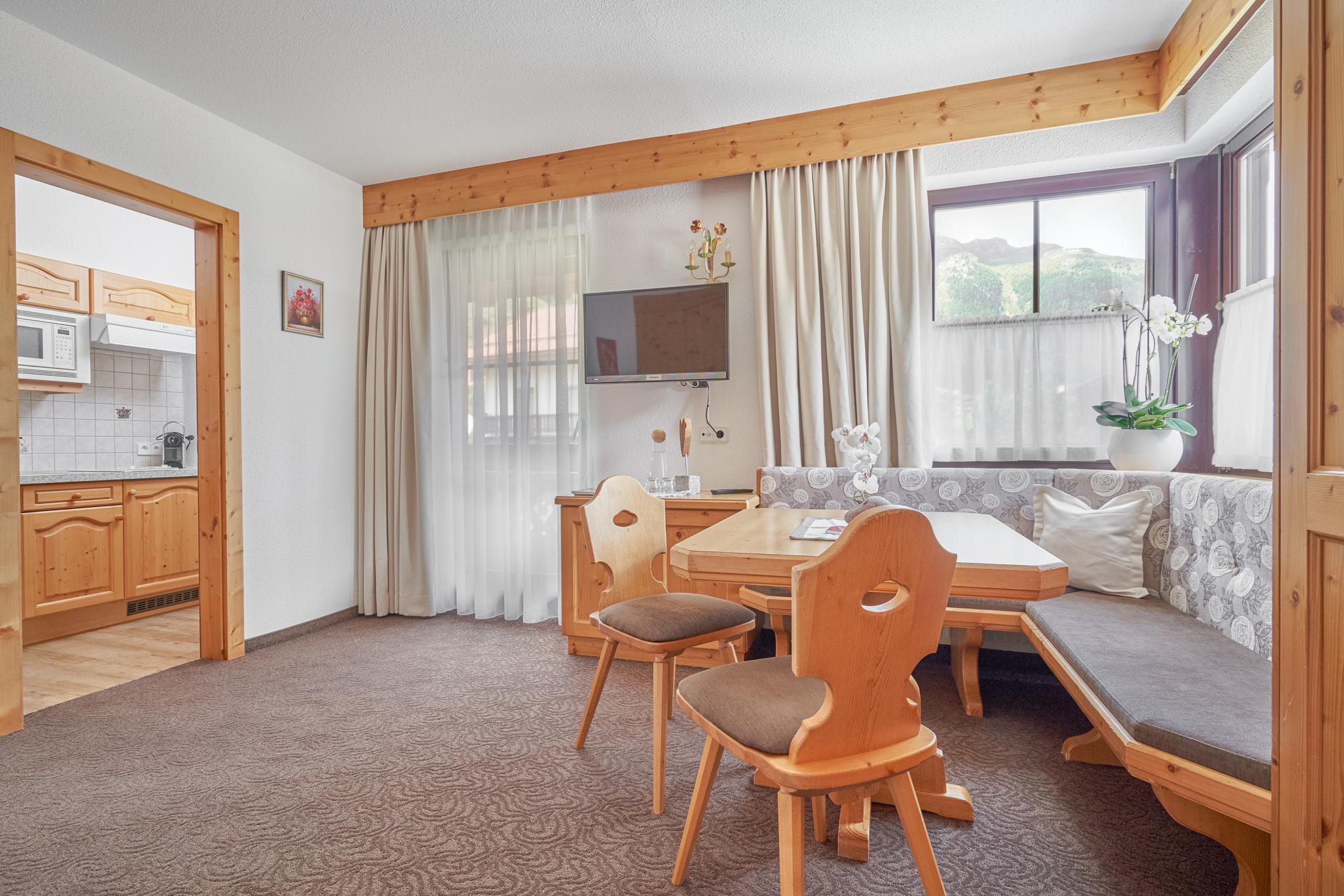 Komfortabler Familienbetrieb oberhalb von Sölden in ruhiger Lage. Speisesaal mit original alter Bauernstube und offenem Kamin in dem Sie vom Chef persönlich kulinarisch verwöhnt werden. Täglich Relaxen in der Sauna, Dampfbad, Infrarotkabine und Hot-Frischwasser-Whirlpool. Im Winter liegen wir direkt an der Skipiste der Gaislachkogelbahn. Sonnenterrasse mit herrlichem Blick auf die Bergwelt. Im Sommer idealer Ausgangspunkt für zahlreiche Wander- und Biketouren da die Trails und Wege in unmittelbarer Nähe sind. Als Gast unseres Hauses erhalten Sie im Aqua Dome eine Ermäßigung auf die Eintrittspreise der Therme.