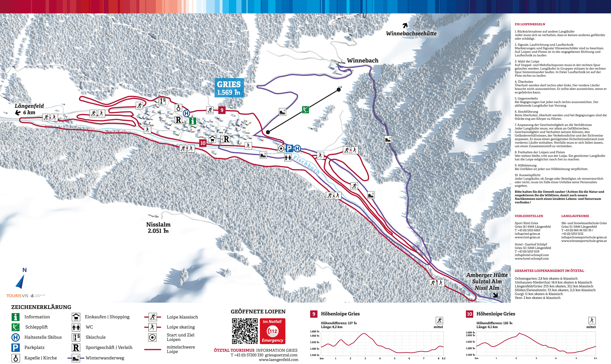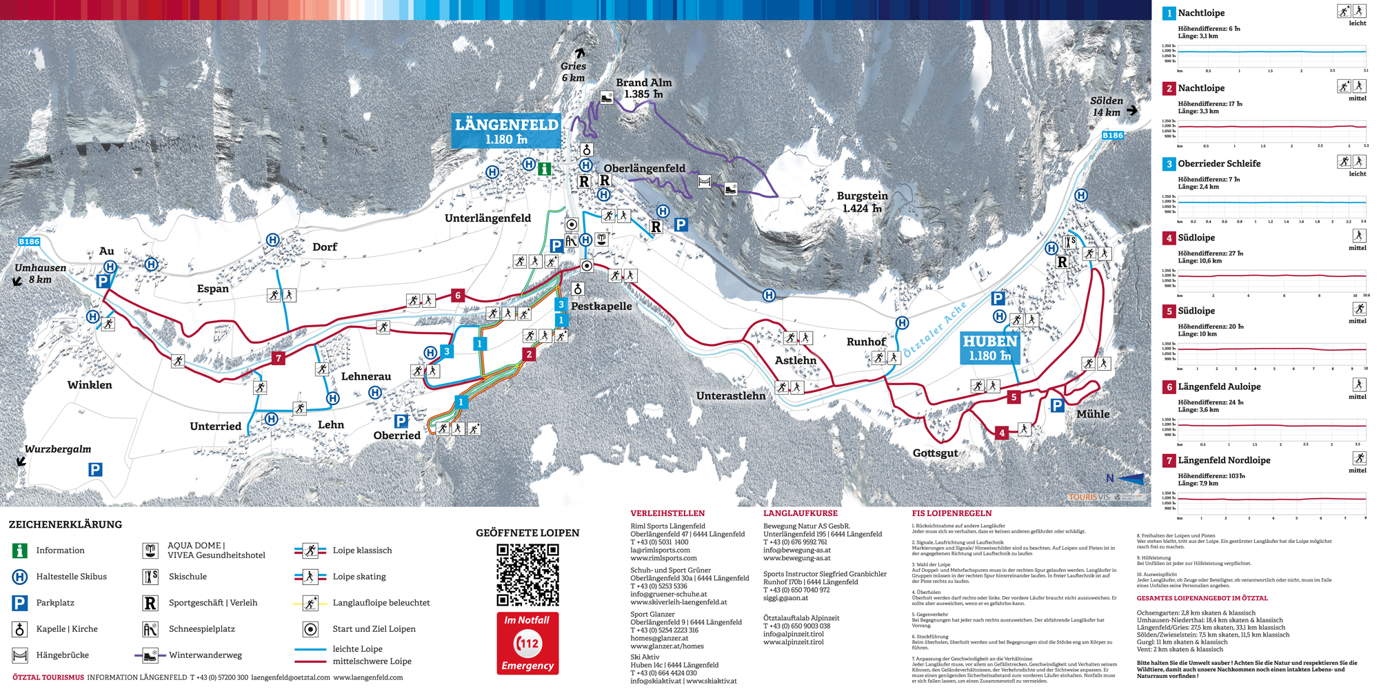 Nur ein paar Kilometer taleinwärts von Niederthai findet sich mit Längenfeld und Gries das zweite große Langlaufzentrum im Ötztal. Wer auf der Suche nach weitläufigen und flachen Loipen ist, der ist im Talbecken rund um Längenfeld goldrichtig: Gesamt stehen rund 50 Kilometer an Klassik- bzw. Skating-Loipen zur Verfügung. Wer erst in den Abendstunden so richtig auf Touren kommt, der kann sich auf der beleuchteten Nachtloipe (wahlweise Klassik oder Skating) so richtig auspowern. Präzision ist beim Schnupper-Biathlon gefragt, das jeden Mittwoch im Winter ausprobiert werden kann. In Gries im Sulztal, der „oberen Etage“ von Längenfeld, locken schneesichere Höhenloipen alle „Ausdauer-Tiere“ auf zwei Latten, ihre Kondition nochmals zu verbessern – die imposante hochalpine Landschaft entbehrt für die Anstrengungen.