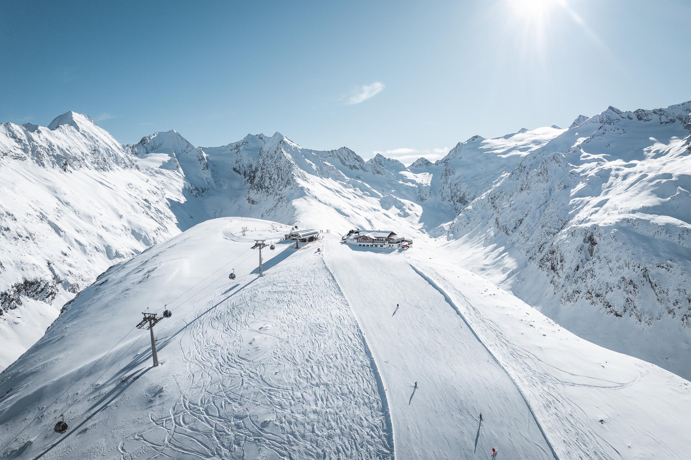 Our lounge in the high mountains is open all year round. On the most beautiful mountain ridge in Tyrol, you have a panoramic view of 21 three-thousand-meter peaks and a huge sun terrace. Choose from the specially designed DIAMOND BEATS menu or the regular menu and experience snow-filled lounge vibes.