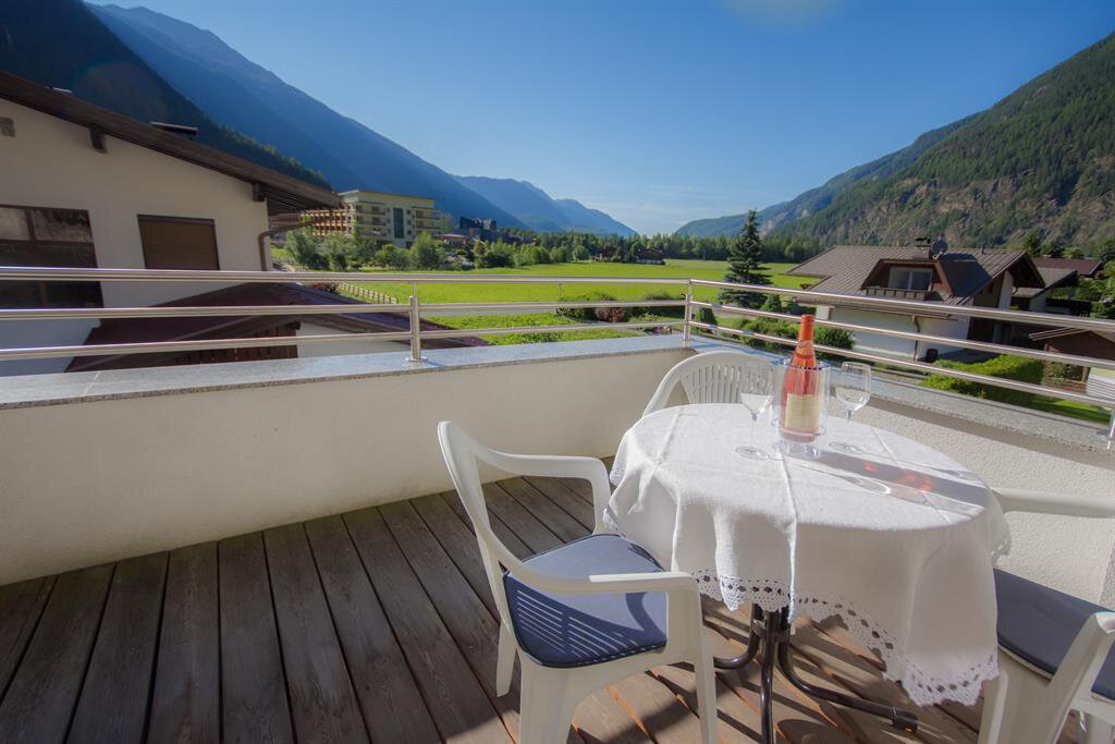 Our apartments are located on the 1st floor in a sunny location with stunning views of the Ötztal mountain world. In the basement you will find a spacious gym, sauna, infrared cabin with relaxation room and a games room with table football and table tennis. An elevator is available as well.