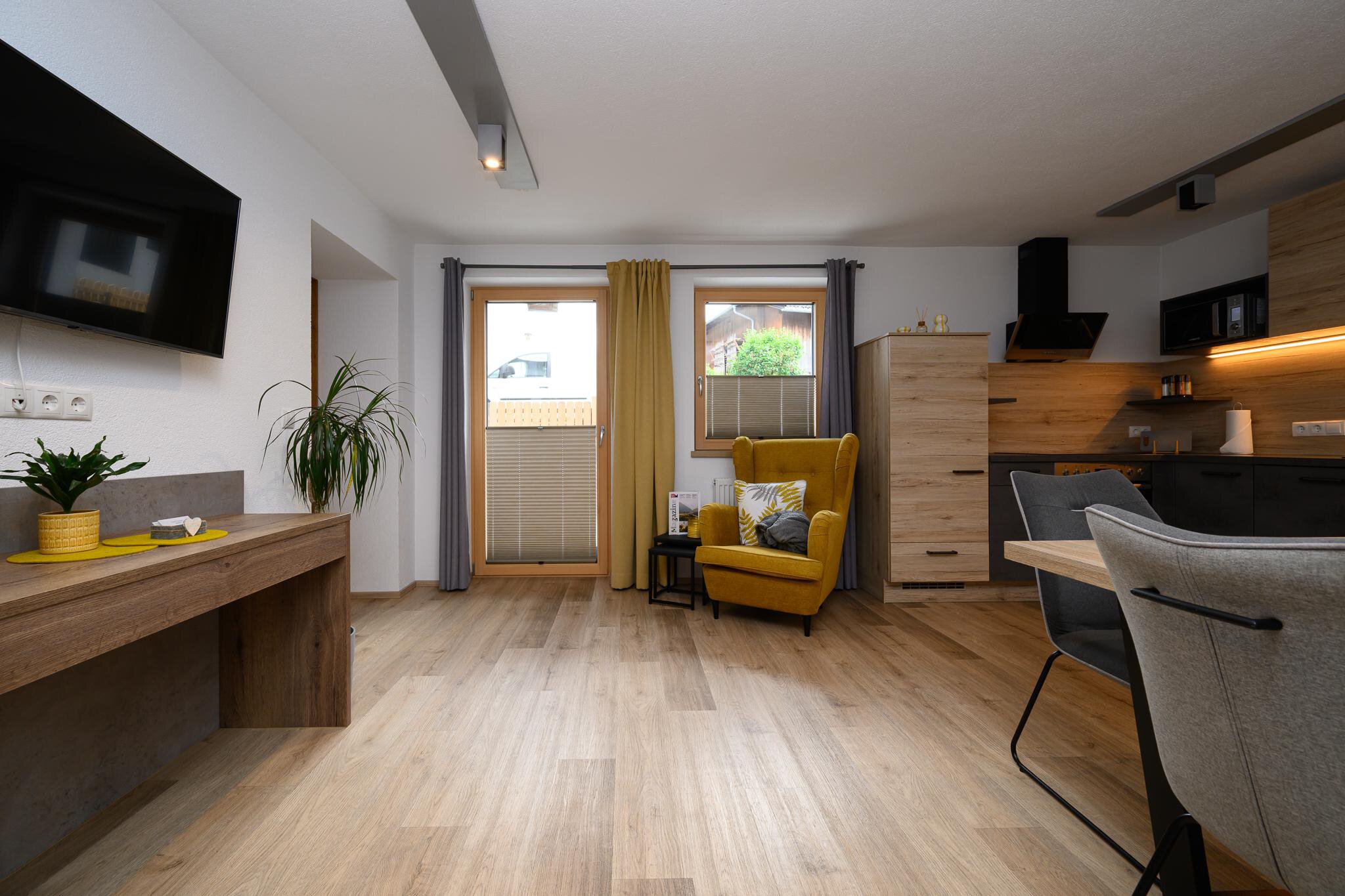 Welcome to our Apart Marie-Therese in Umhausen. SUMMER-SUN-SUNSHINE- that's how it should be on a well-deserved holiday. Our house has three wonderful, modern apartments that have been awarded 4 Edelweis. Each apartment has a double room with its own bathroom, spacious kitchenette, living area and balcony with mountain views.