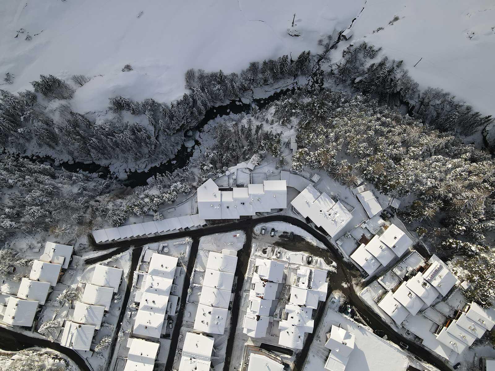 - right at the ski-bus/ hiking-bus/ bus stop