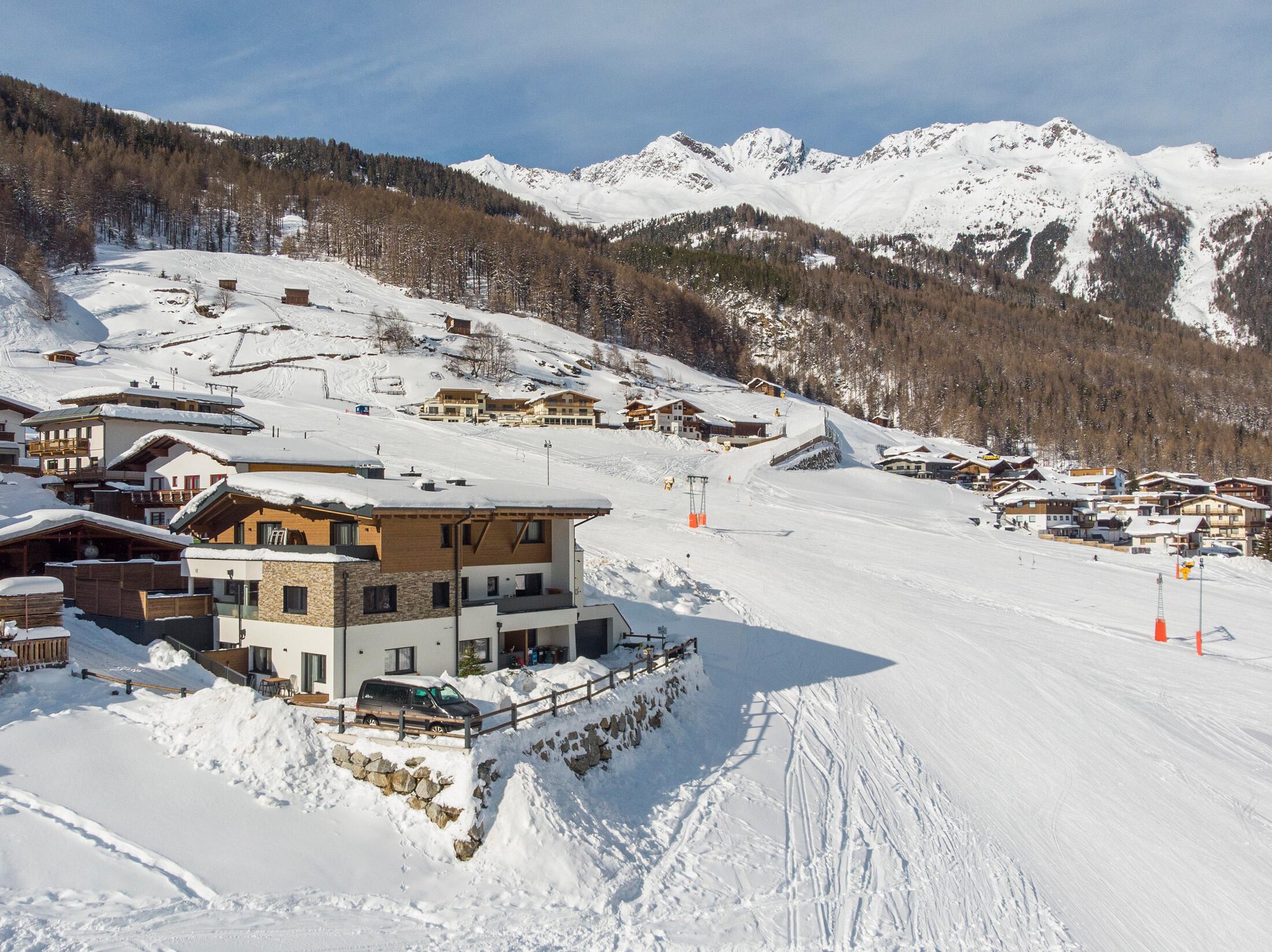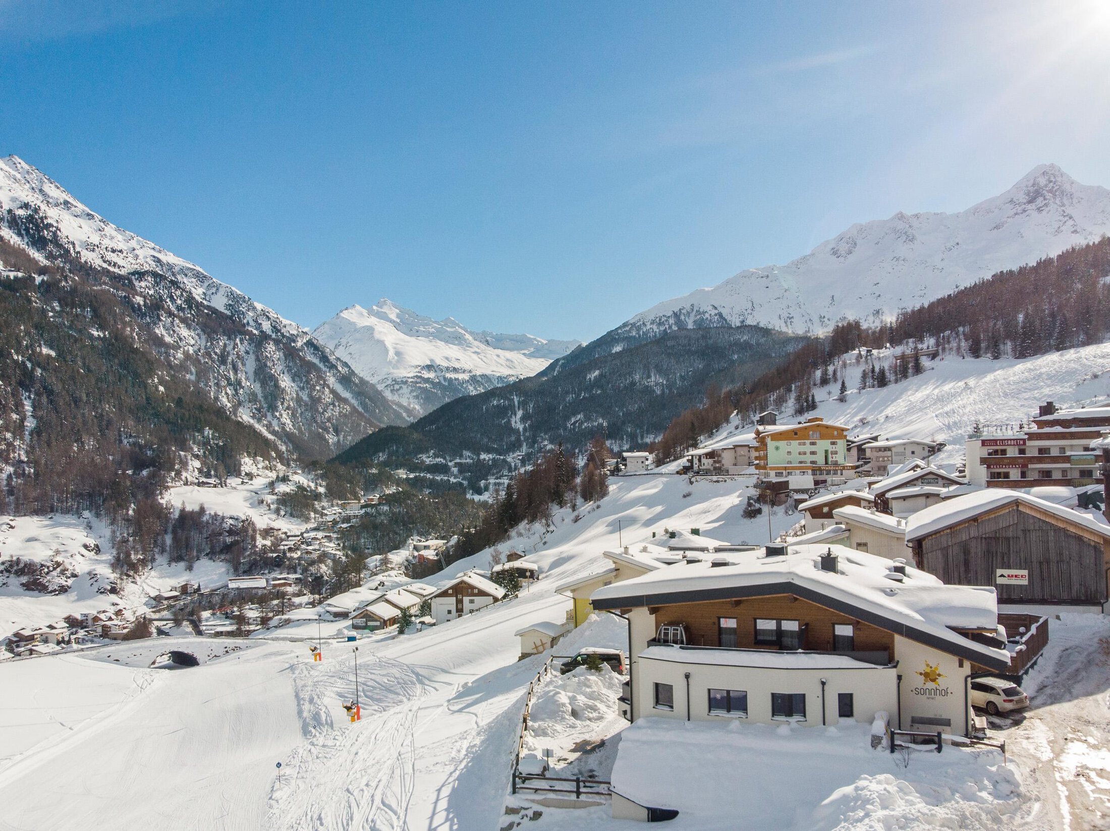 Our APARTMENTHOUSE SONNHOF "SKI IN & SKI OUT", is located in a sunny setting above SÖLDEN.