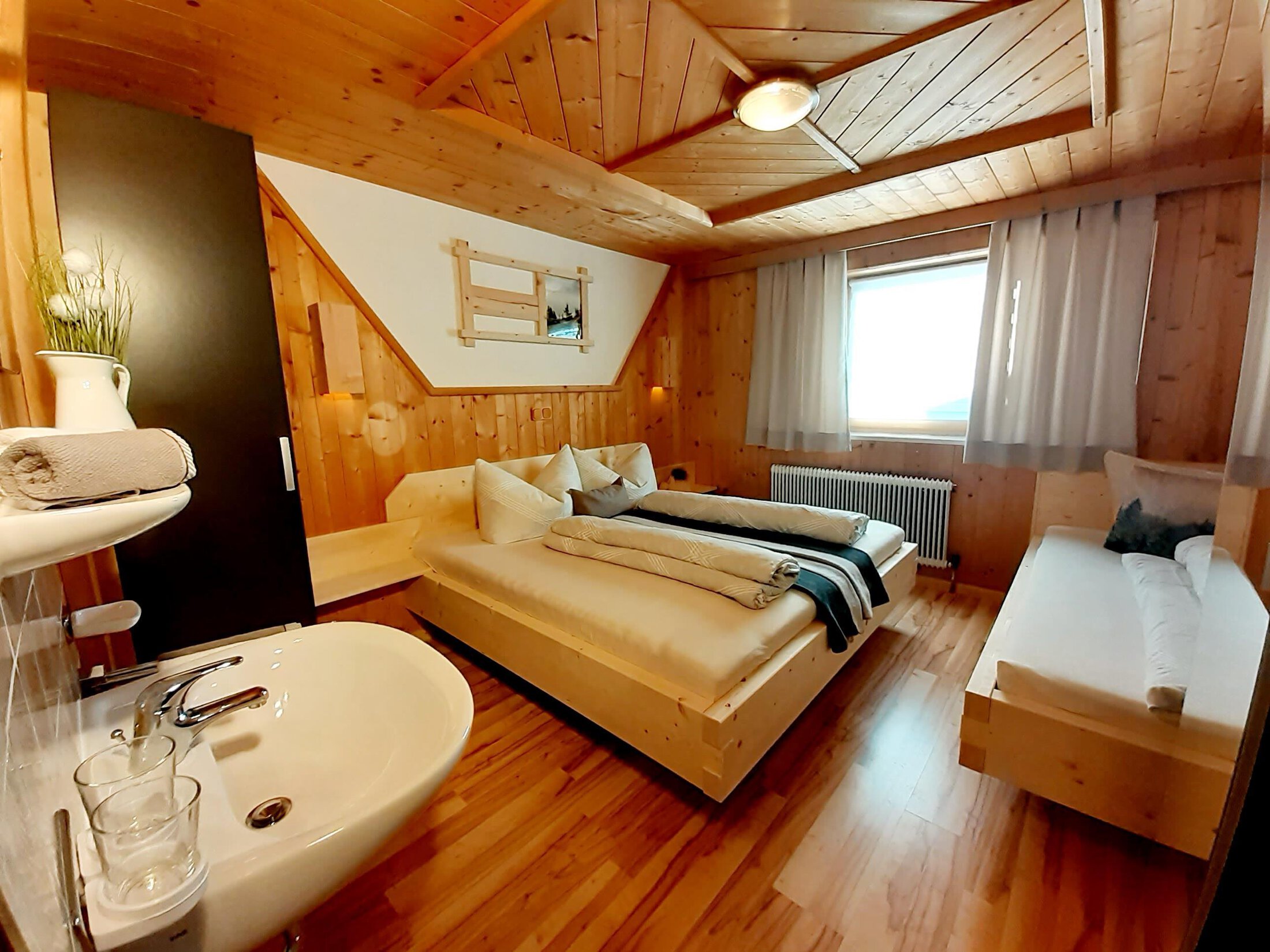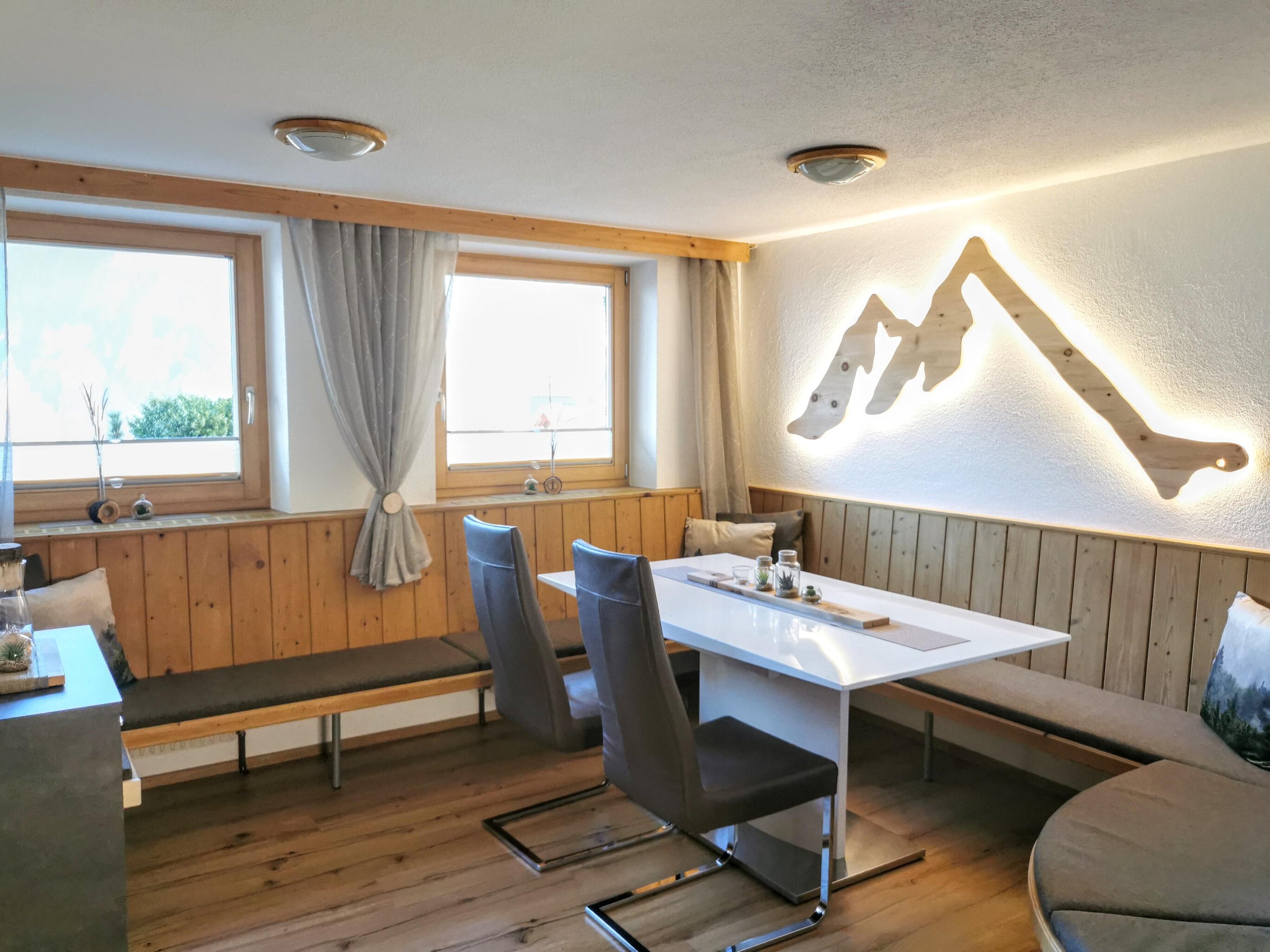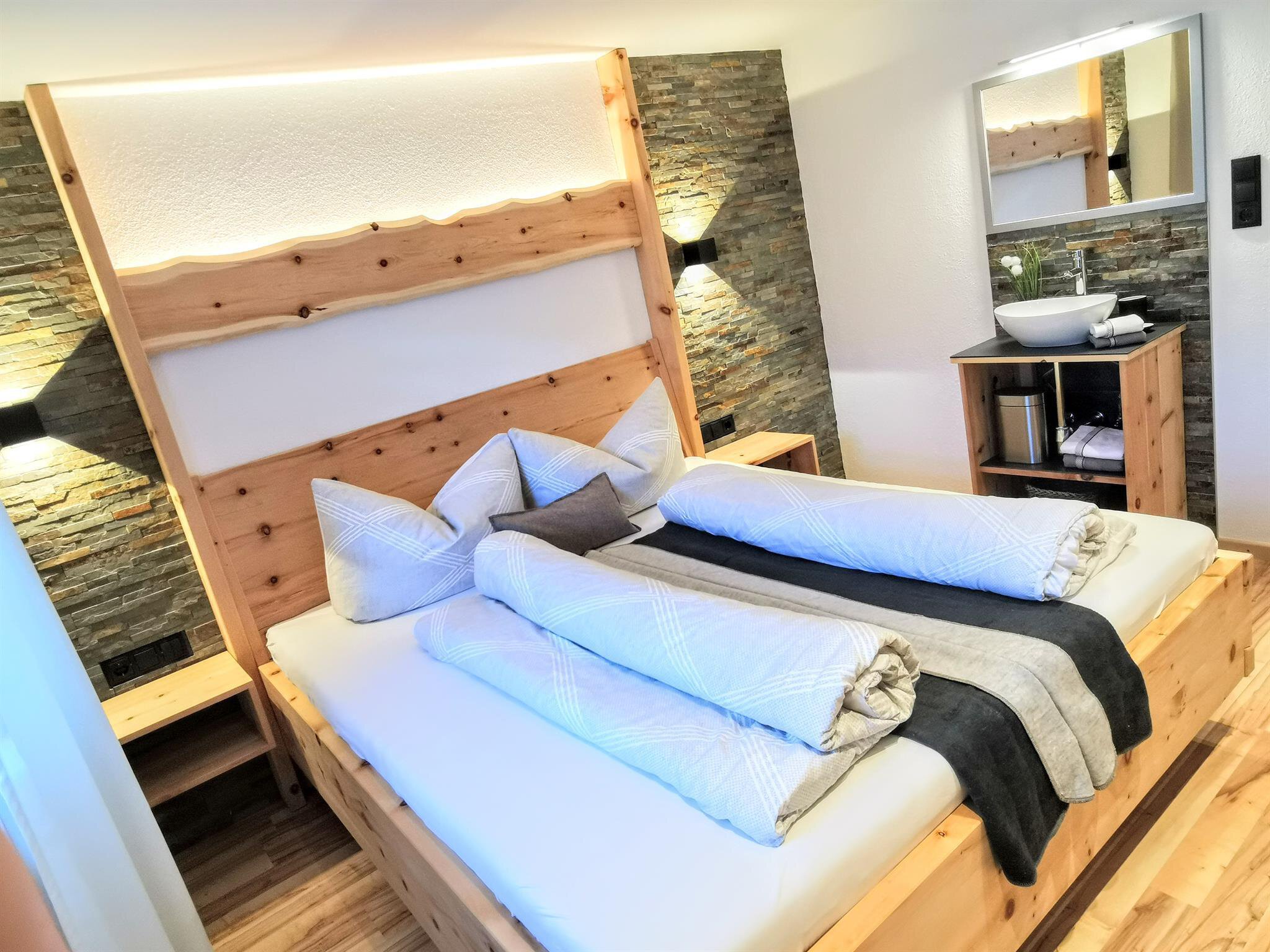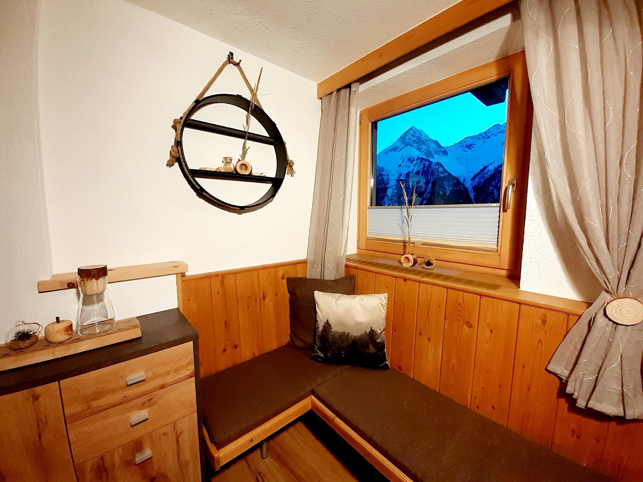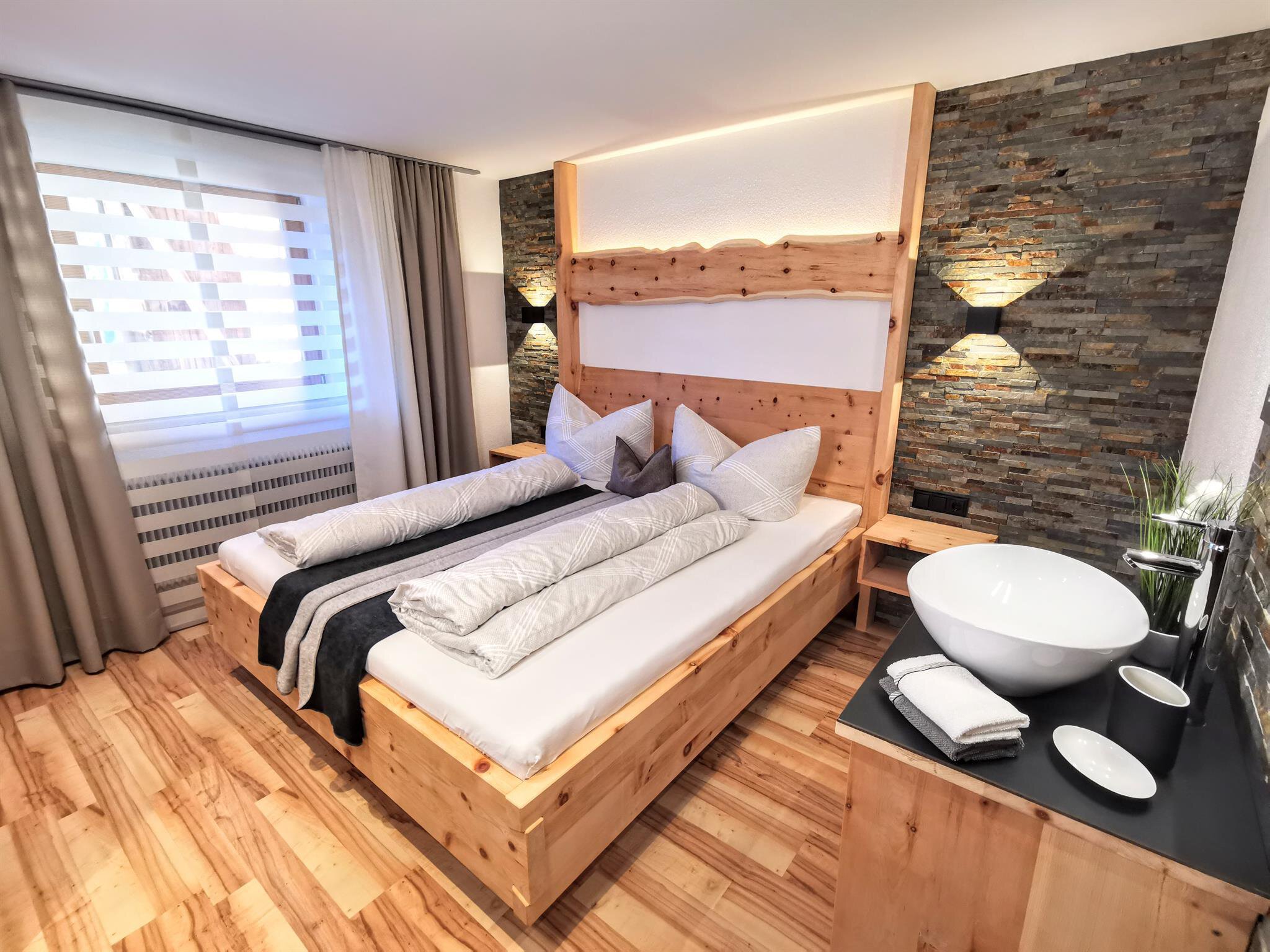 Tyrolian wood of swiss stone pines; nature materials and handicraft conveys a cosy ambience. Have some peace and quit away from noisiness and stress.