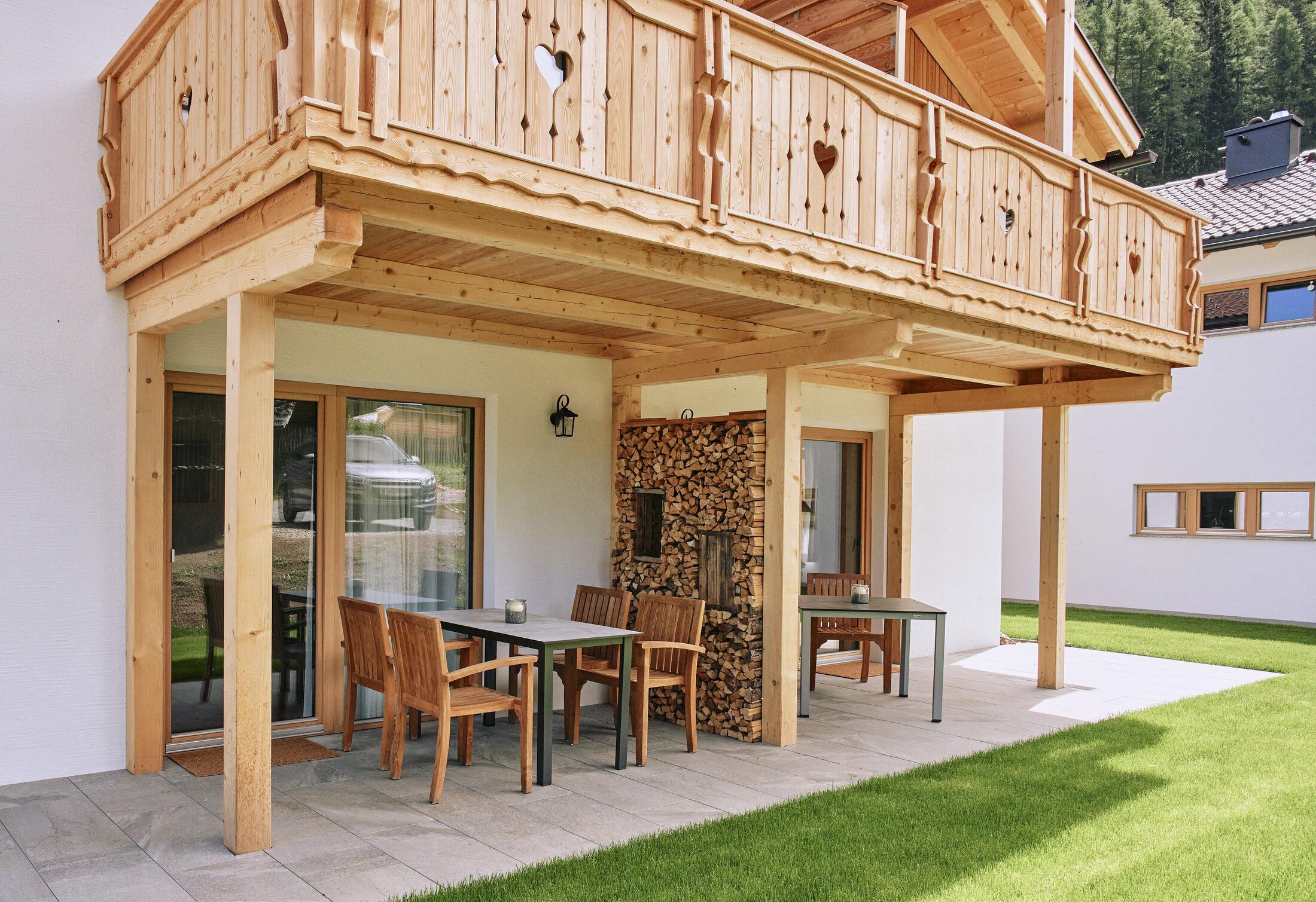 Traveling by car: the apartments can only be reached from the village center/Längenfeld via a 1.8 km long forest road. In winter, a four-wheel drive vehicle is required, and snow chains must be carried. Transfer is possible for arrivals and departures.