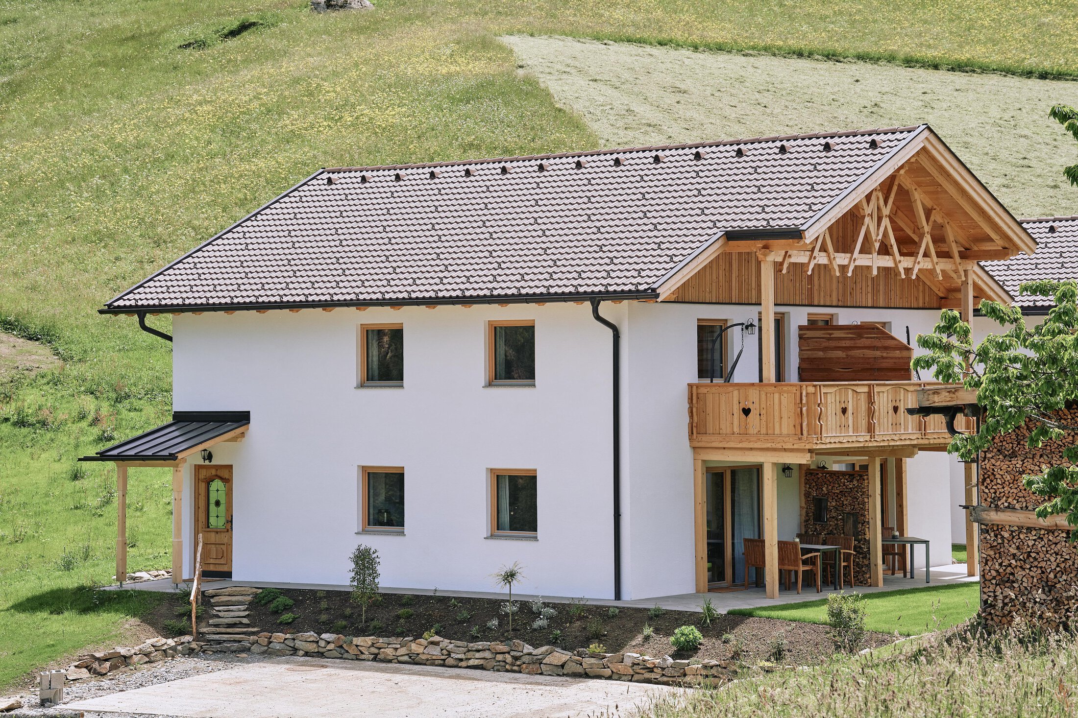 Our farm and the snack station have been family-owned since 1996 and are now run by the second generation. As an organic farm, we want to do our farm work with a clear conscience, which is why it was particularly important to us to build our apartments ecologically and sustainably. The new building and the furnishings are characterized by local wood, environmentally friendly raw materials and thrive on creative upcycling.