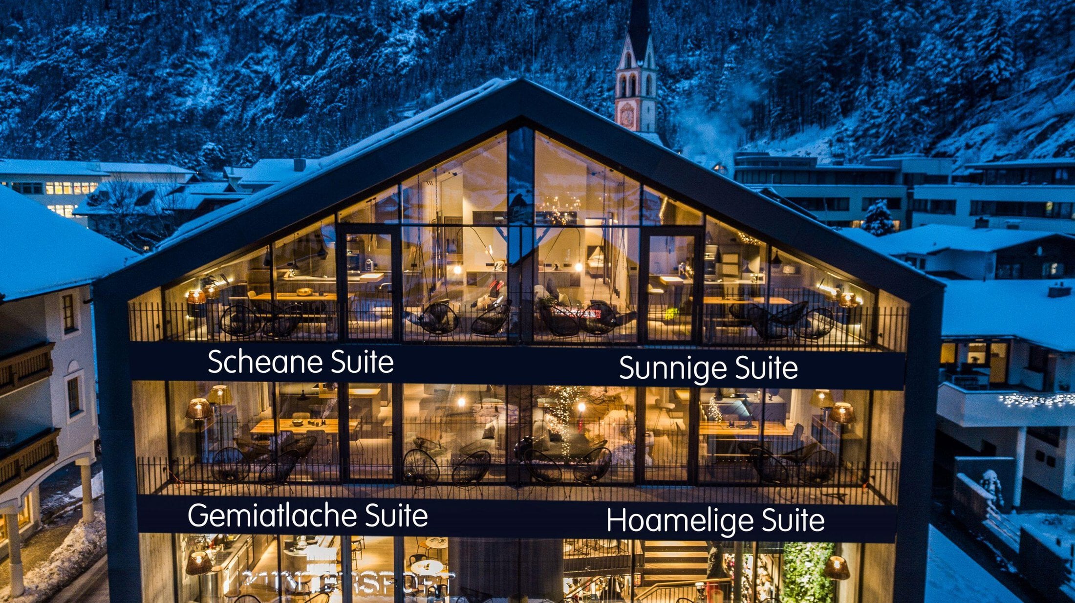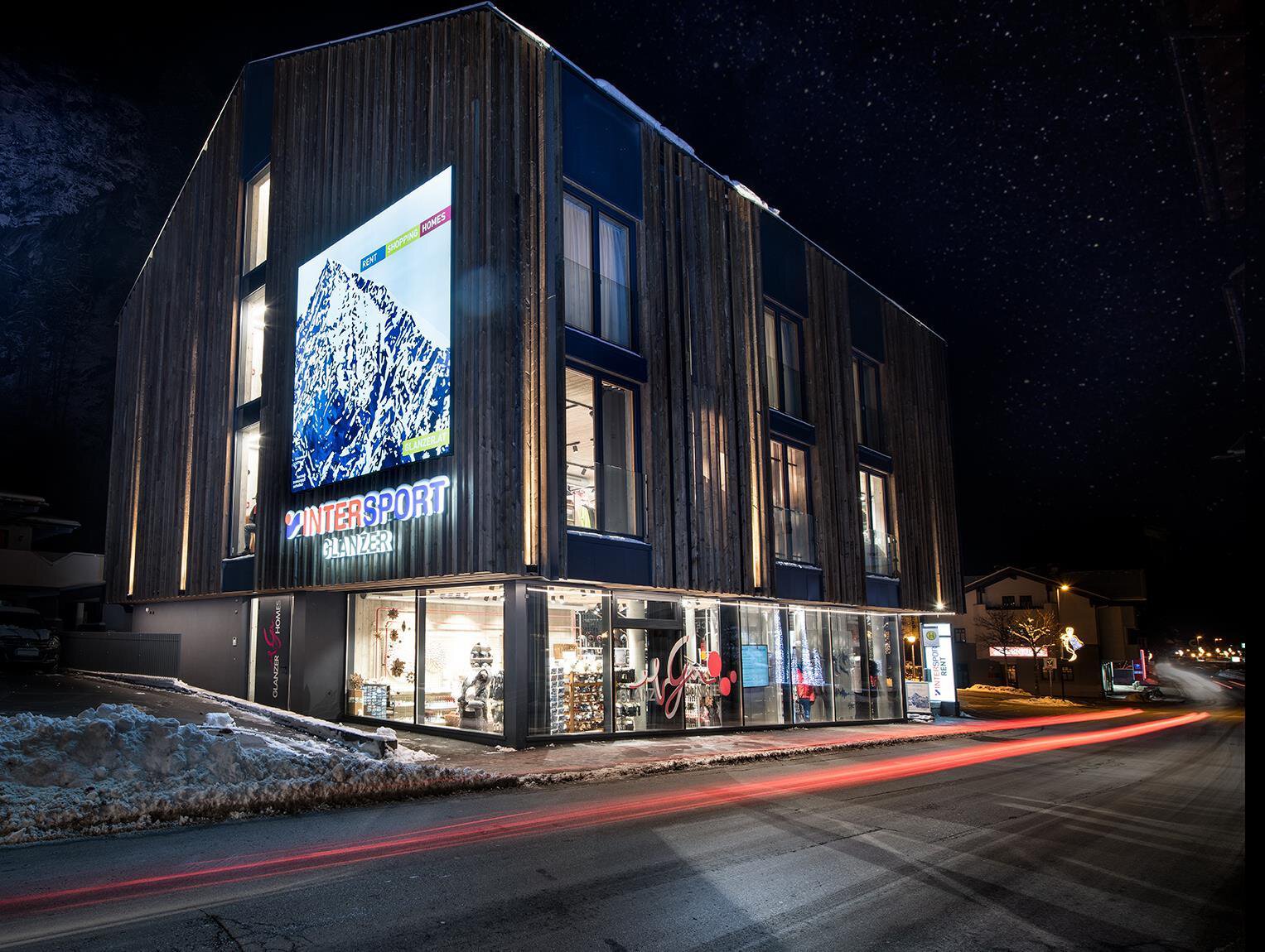 The luxurious Glanz & Glory Appartements are located at the heart of Längenfeld. The apartments offer uninterrupted views from the second and third floor, and are easily accessible by elevator. On the lower floors you will find an Intersport Glanzer ski/snowboard or bike rental shop, as well as a bar where drinks and a souvenir corner are available. During your stay, enjoy free access to the wellness area with indoor pool at the renowned Hotel Rita, our partner hotel, which is just 240 metres away and a 2-minute walk away.