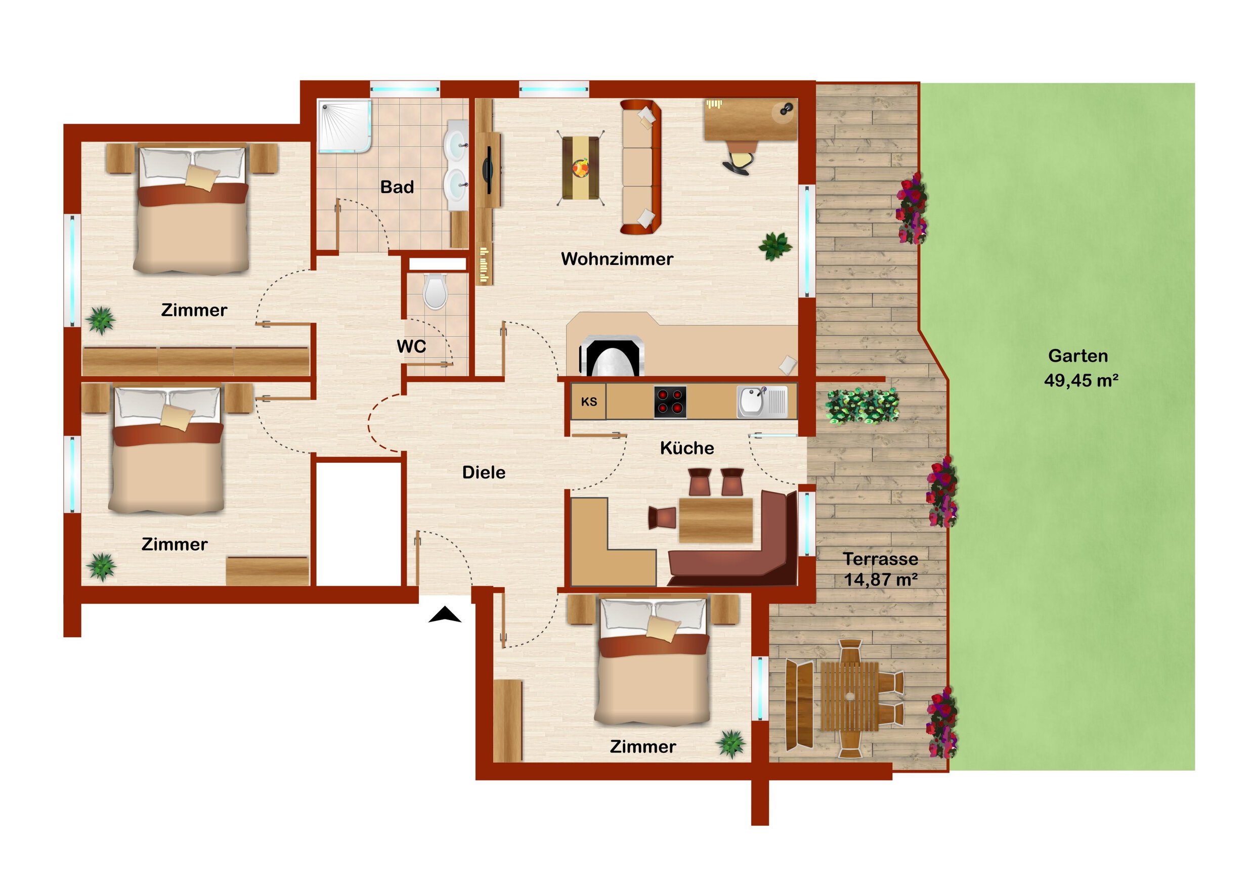- Lockable bicycle storage room