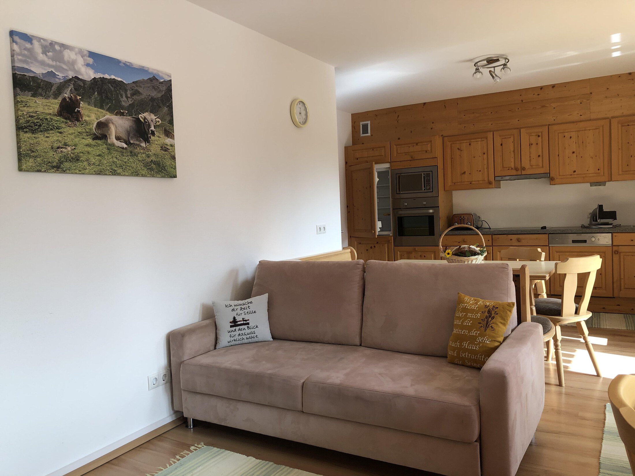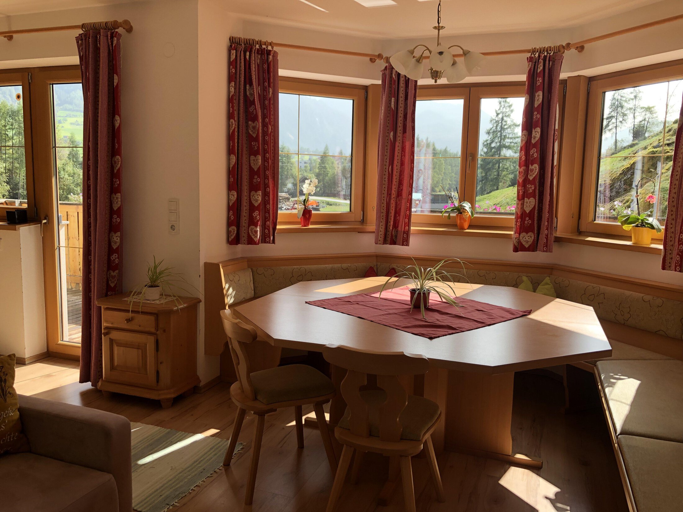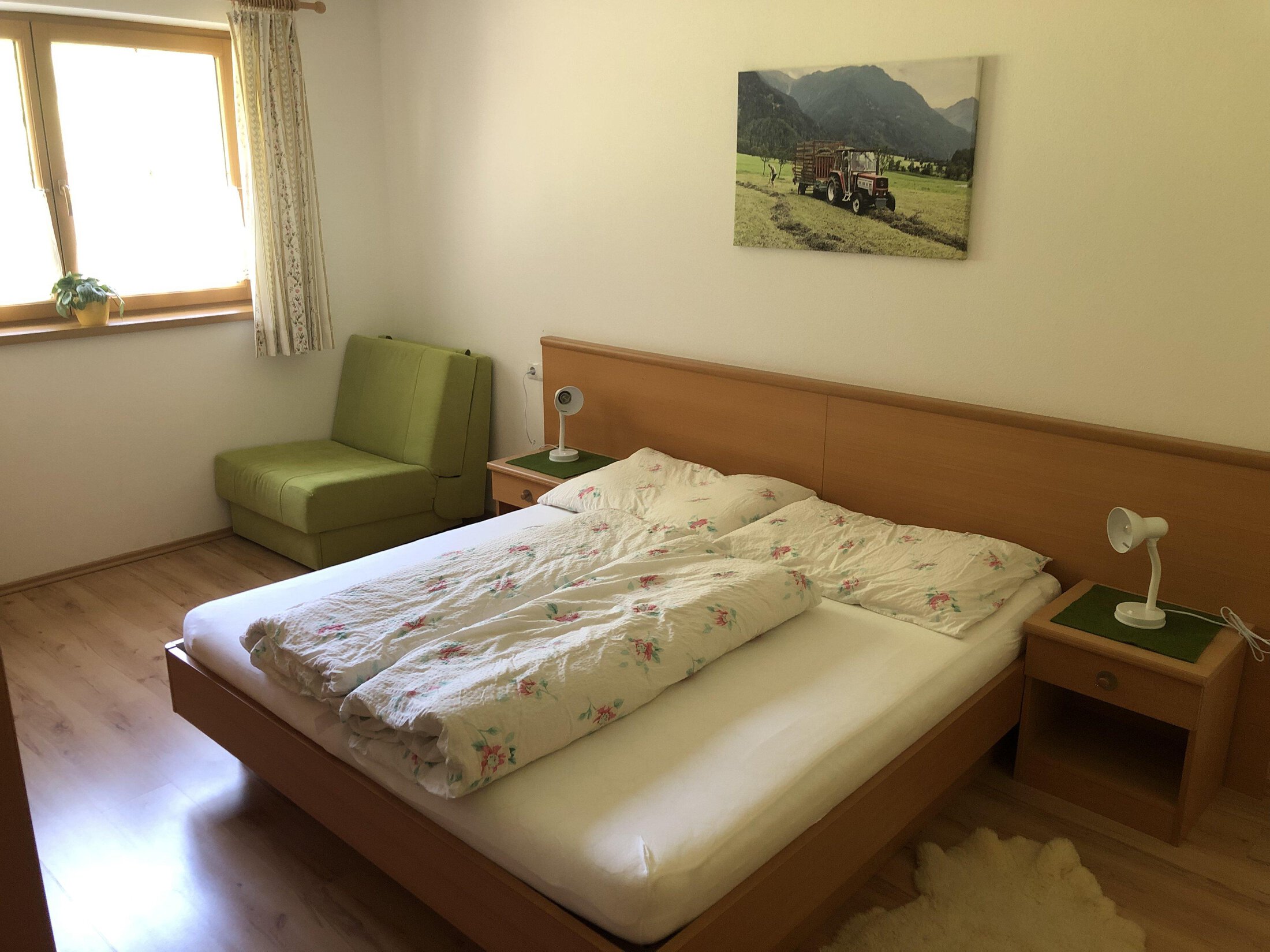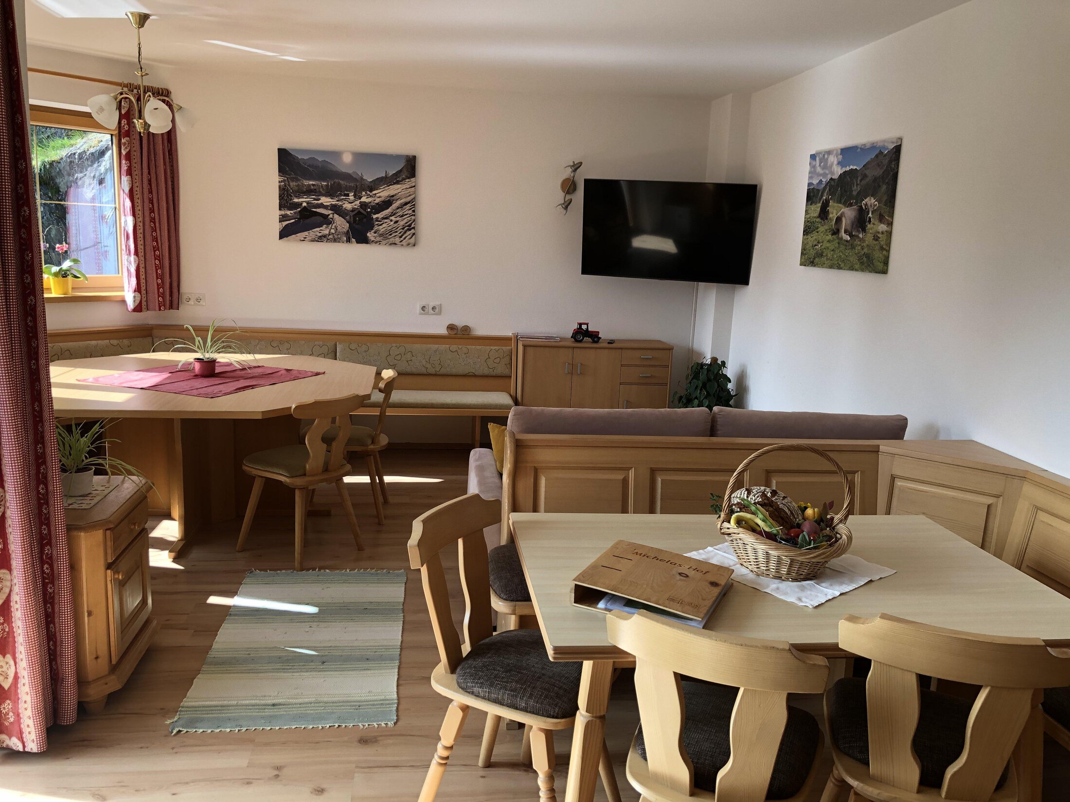 Our farmhouse nestles in a sunny spot on the egde of the forest, far away from noisy traffic routes, encircled by the scenic Ötztal Mountains and its varied hiking and cycling routes. Cows, pigs, sheep, hens and cats (sheep and cow spend the summer on the Alpine pastures) live here with us. At Frischmann's Beerengarten our guests can sample strawberries, raspberries and redcurrants, taste fresh farm products such as milk, yogurt, ham and eggs. There is also a private chapel on our farm. We take you on a tour of the farm and the garden, and explain all the little details to you: daily work, farm products, etc. In winter, you can choose from the family-friendly ski areas of Hochoetz and Niederthai (approx. 10 km), the top ski destination of Sölden (approx. 23 km), varied winter walking trails and cross-country skiing tracks.