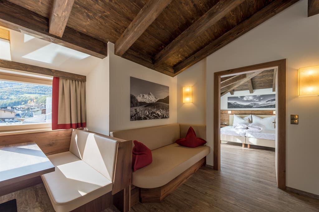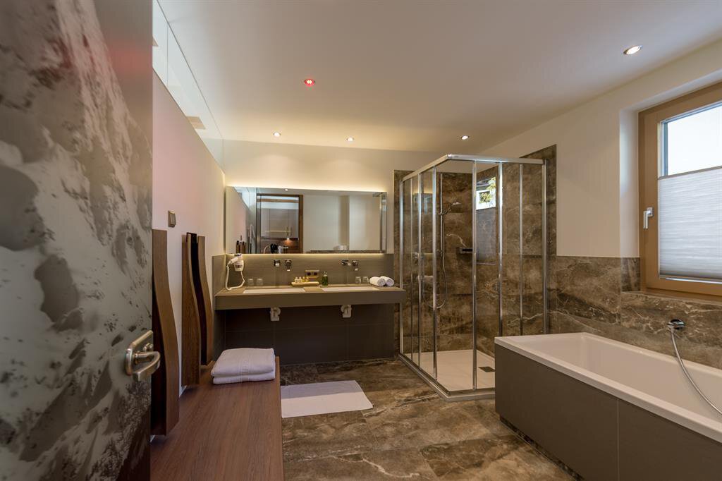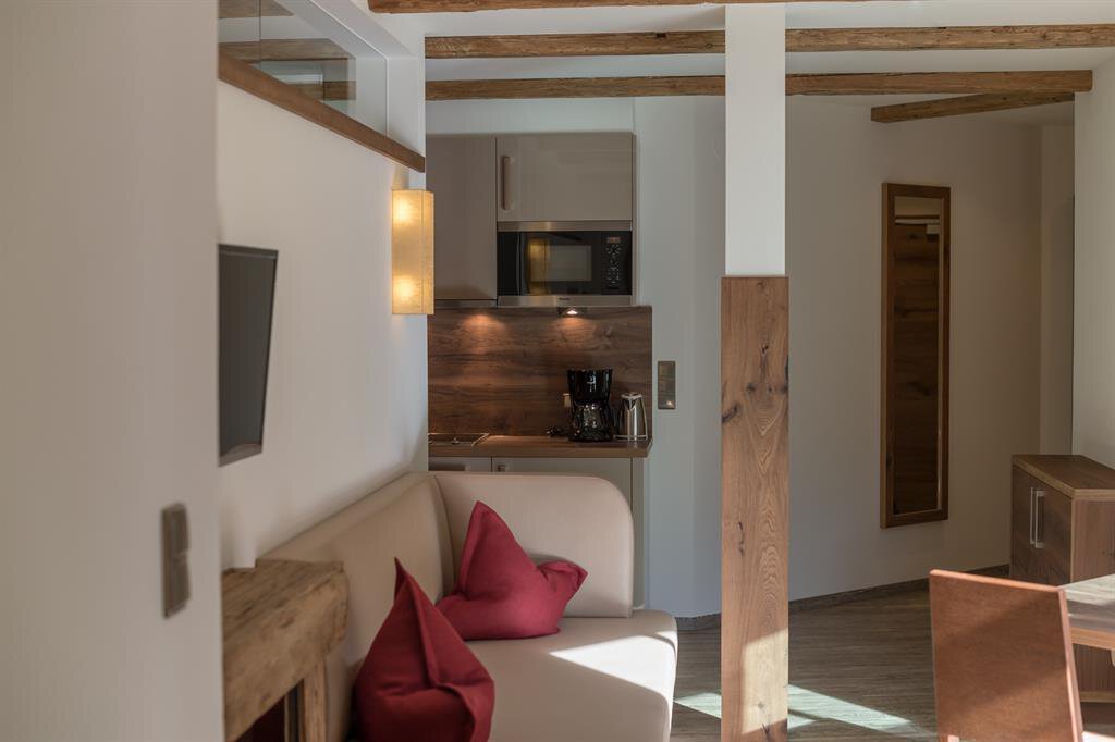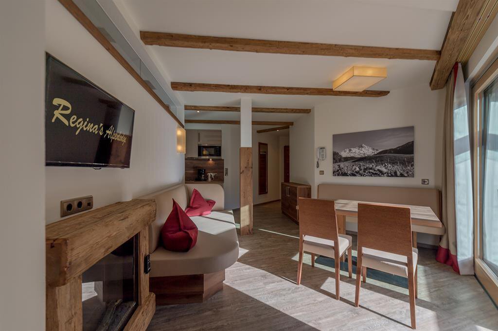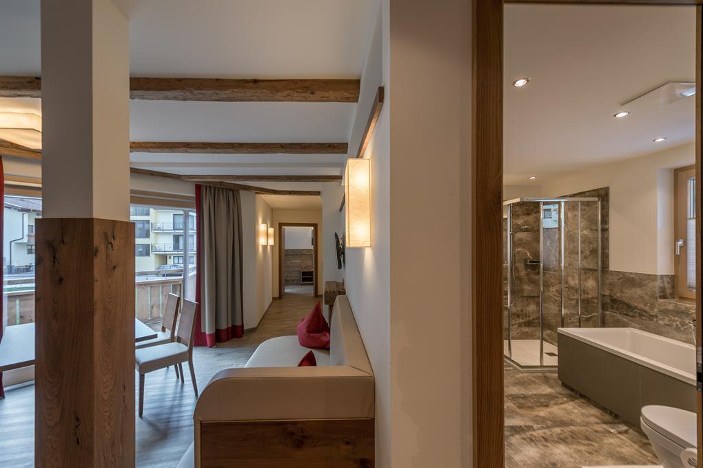 You have found your perfect holiday location: THE LODGE by Regina, only 300 metres from the town centre of Sölden and a few minutes walk from the Giggijoch cable railway. Here, your holiday with friends and family will be a resounding success. The unmistakable, generous lodge style with high-quality wood and stone materials creates an elegant Tyrolean atmospere that knows how to display its modern advantages.