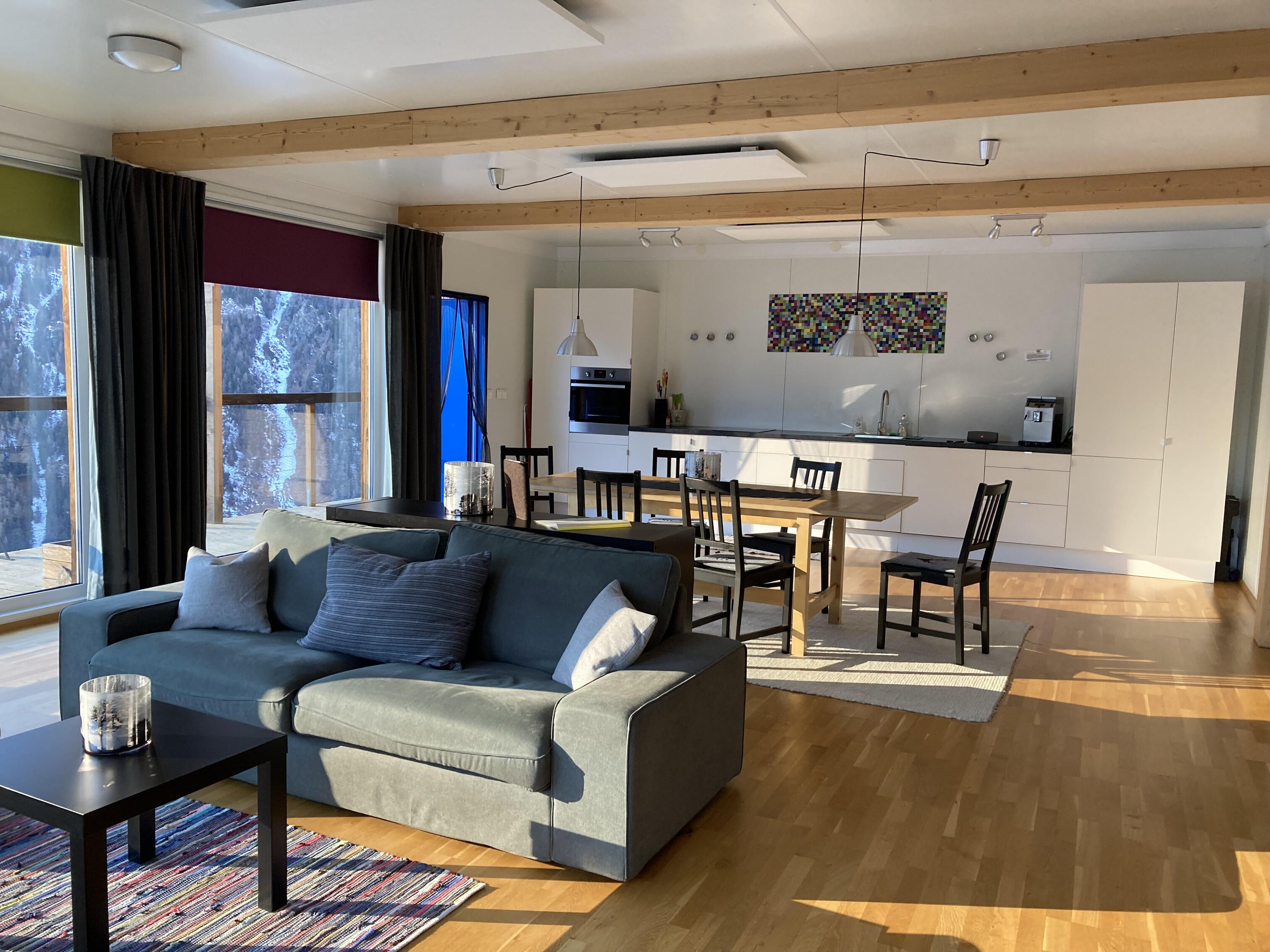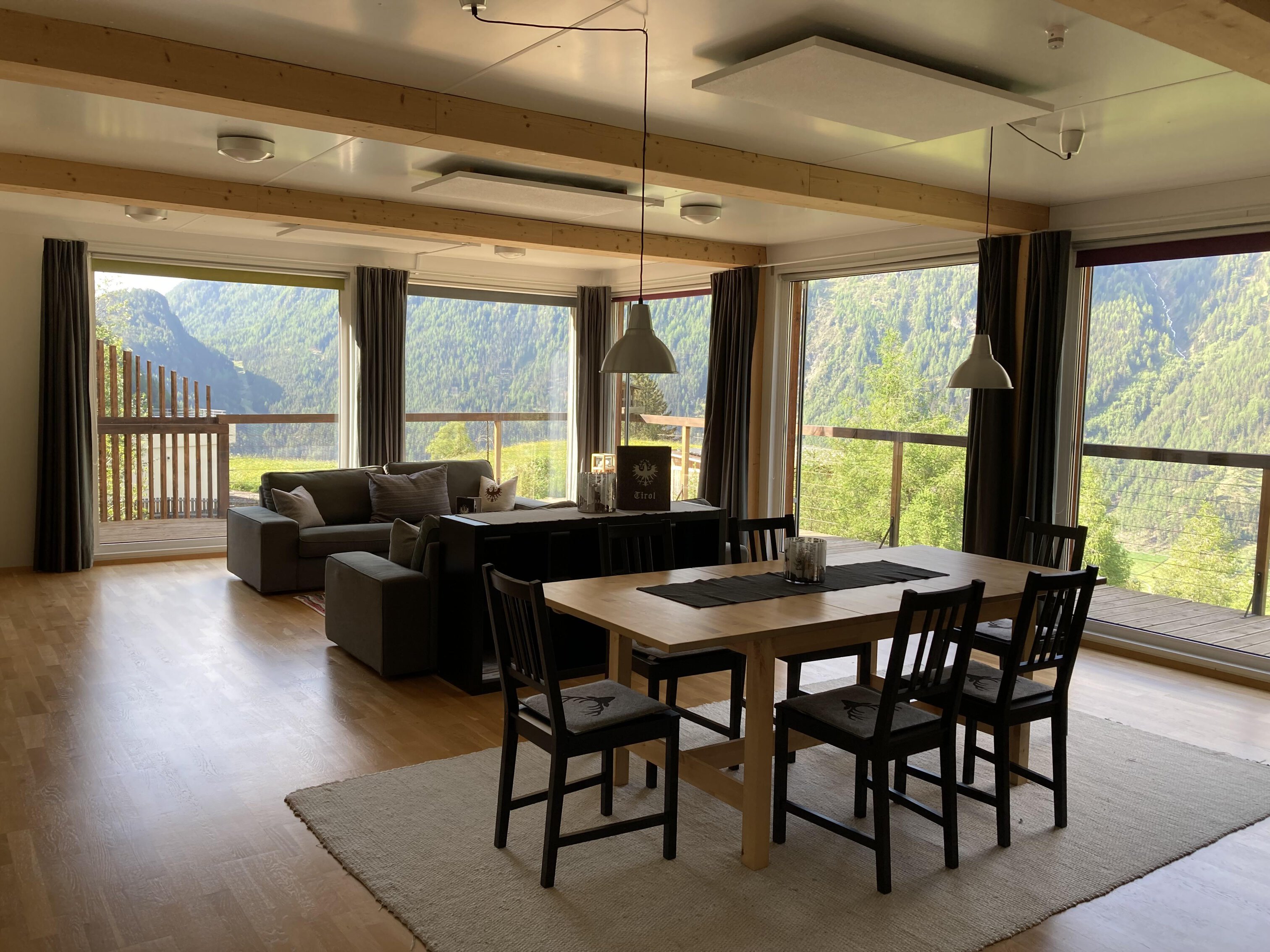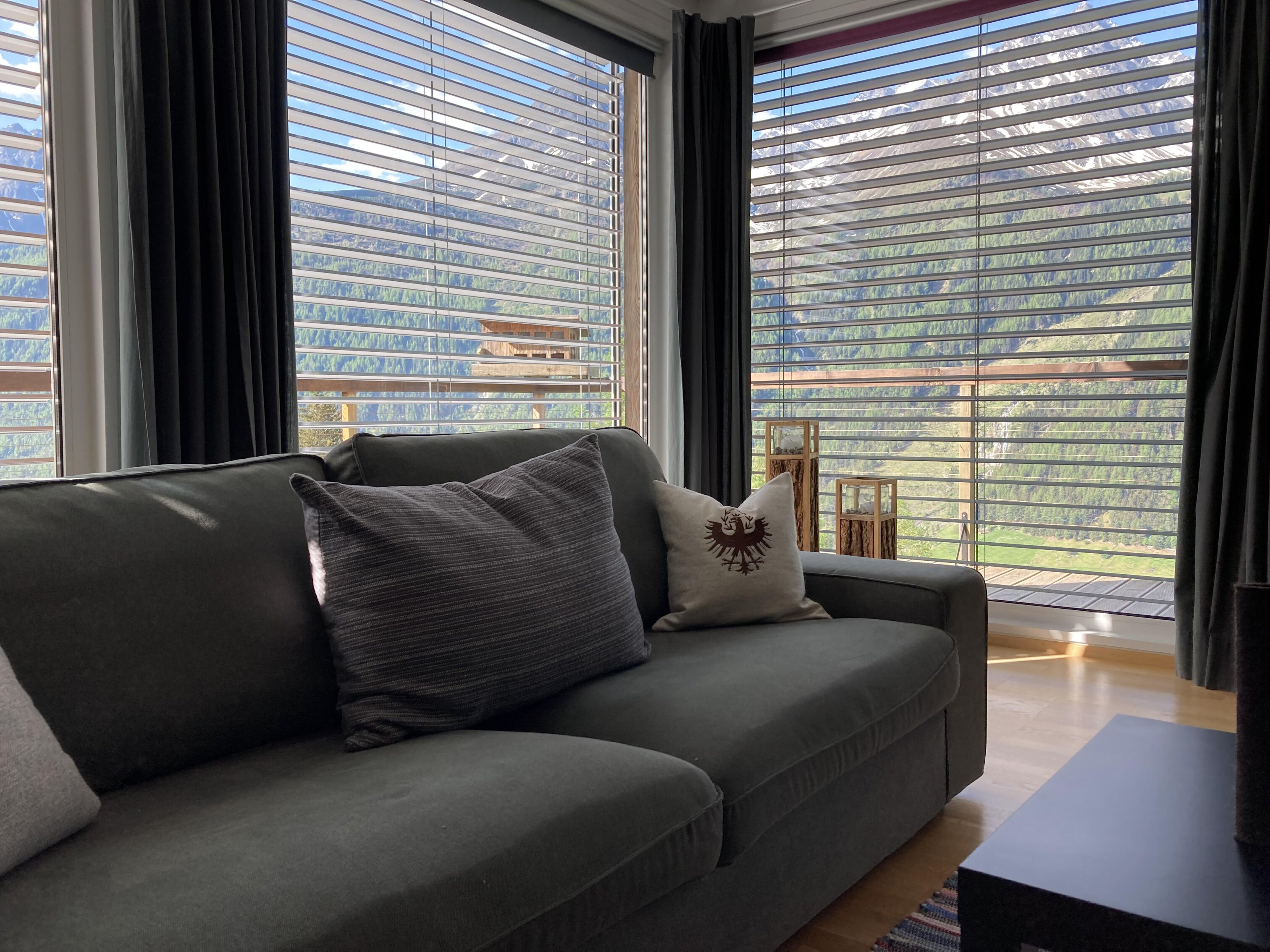 Our holiday home is about 200 m above the center of Längenfeld in the hamlet of Burgstein at an altitude of 1500 meters. The container house was built from 14 modular containers and stands on 4 concrete pillars high up on the sun-kissed plateau. Large windows and open construction design with all around balcony open up great vistas and uninterrupted views of the surrounding peaks higher than 3000 meters. The free skibus takes you to the top ski areas within Ötztal. All hiking trails start right on your front door and the suspension bridge is about 15 walking minutes from our holiday home.
