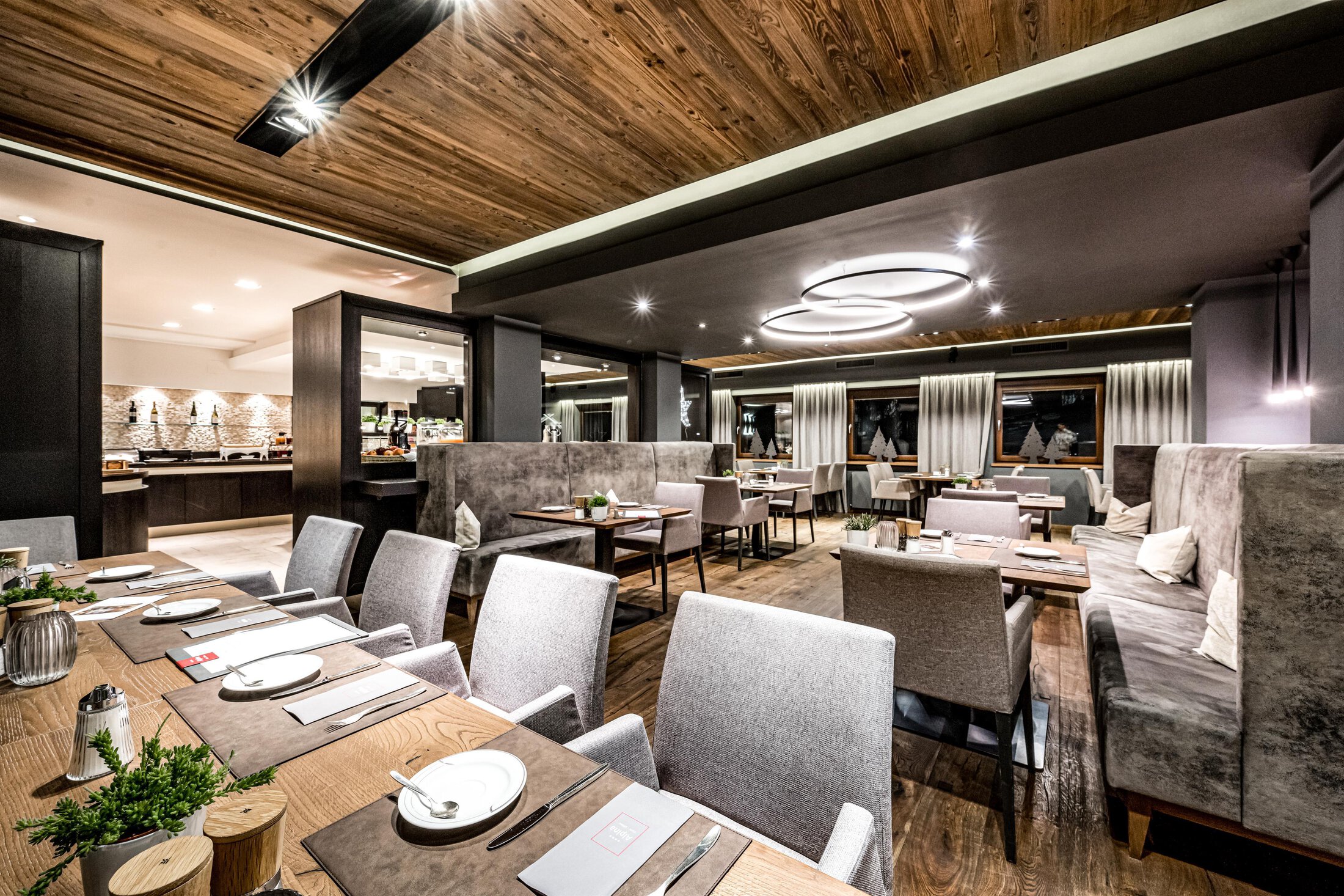 The hotel also offers a restaurant, homey hotel bar with living area, parking, garage, free Internet access for our guests. The 300 m² AQUA ALPINA sauna parlor includes a rustic Ötztal sauna, whirlpool and varied steam baths.