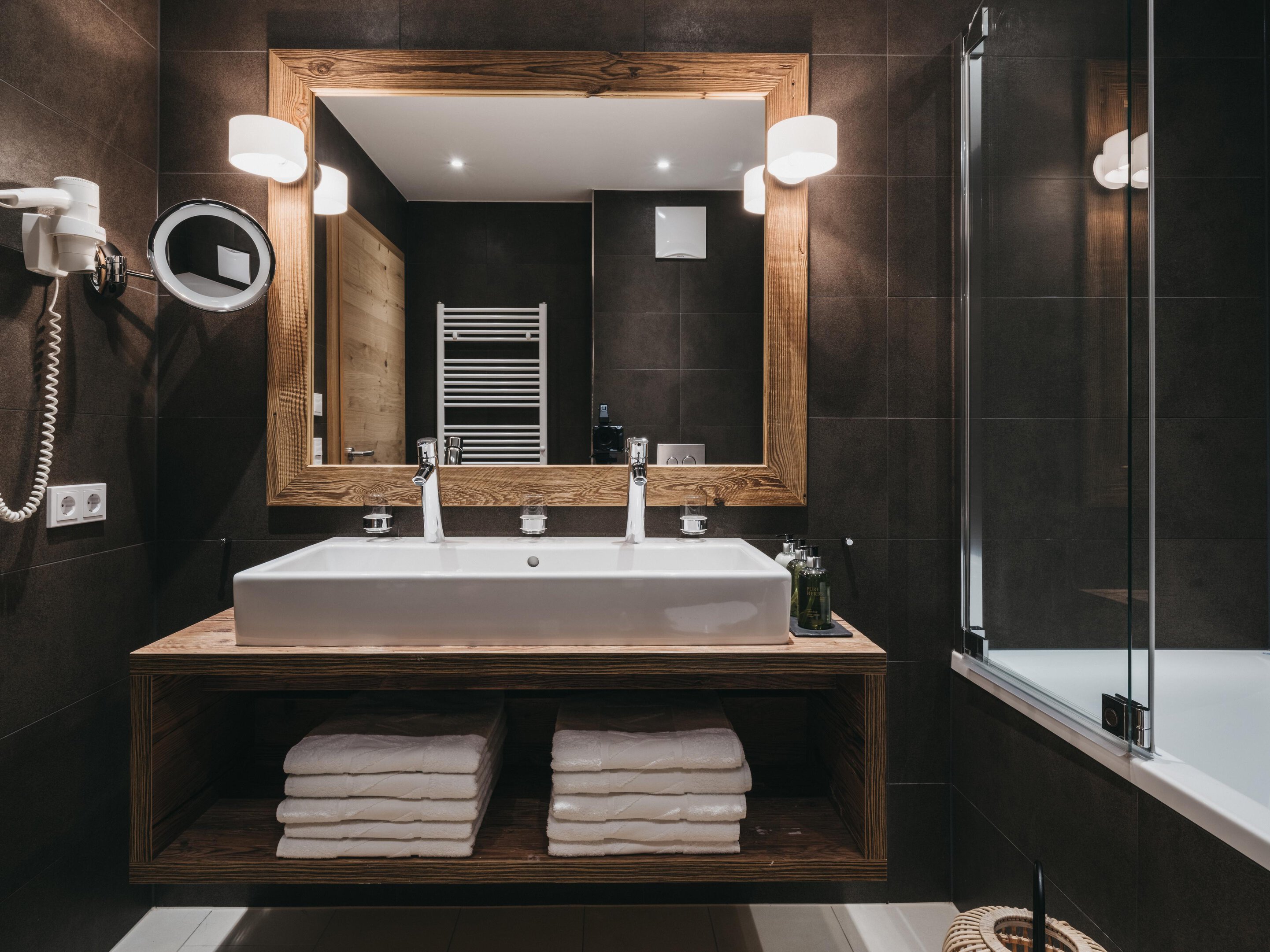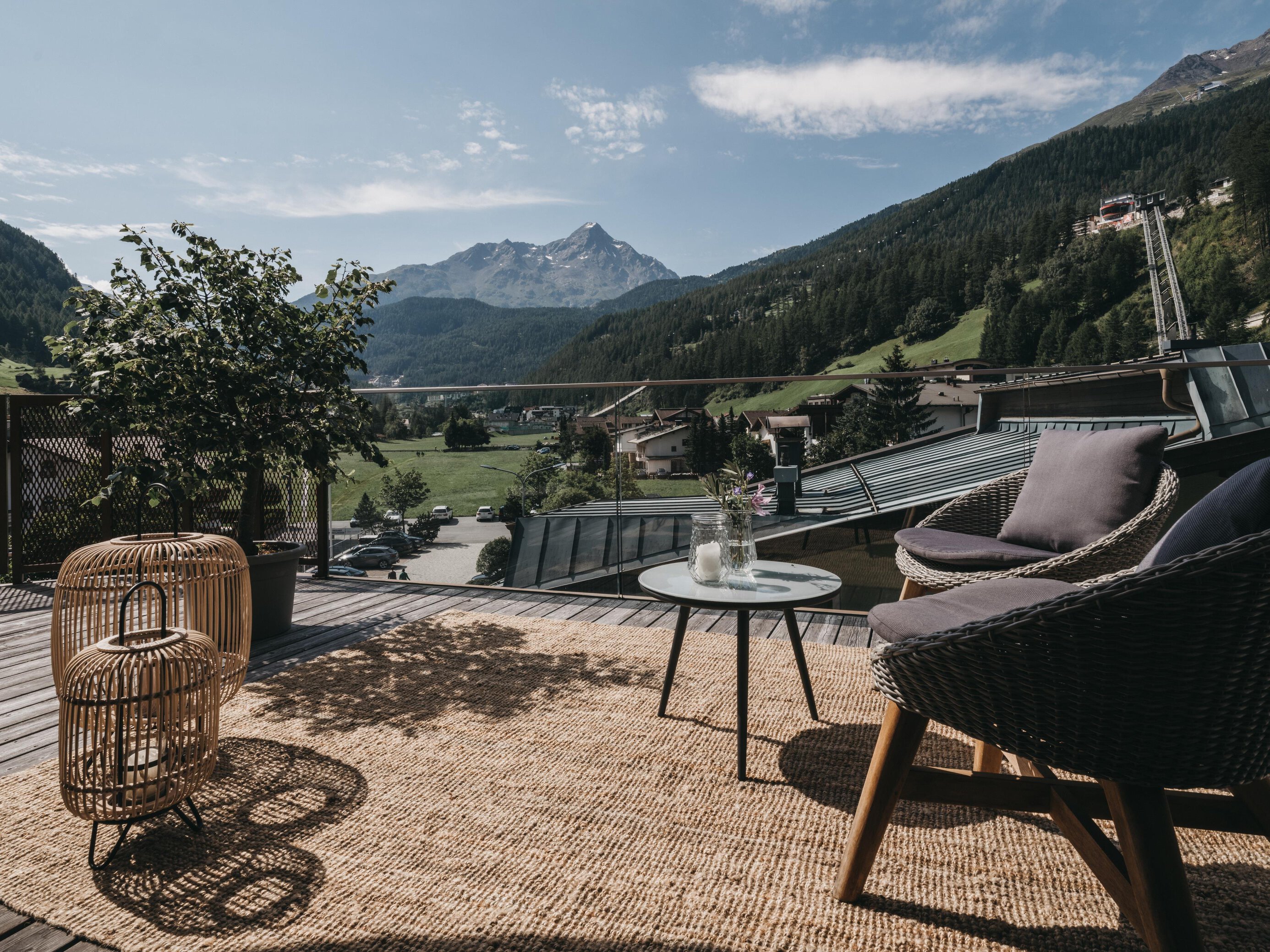 Included: Wellness area (Finnish sauna, herbal sauna, steam bath, ice-crasher, relaxation room, tea station and 360° panoramic terrace), rental bath bag with bathrobe, slippers and bath towel, in summer Ötztal Inside Sommer Card, INTERSPORT Rent – whether in summer for bikes & e-bikes or in winter for ski and snowboard equipment, you get 10% online discount at INTERSPORT;