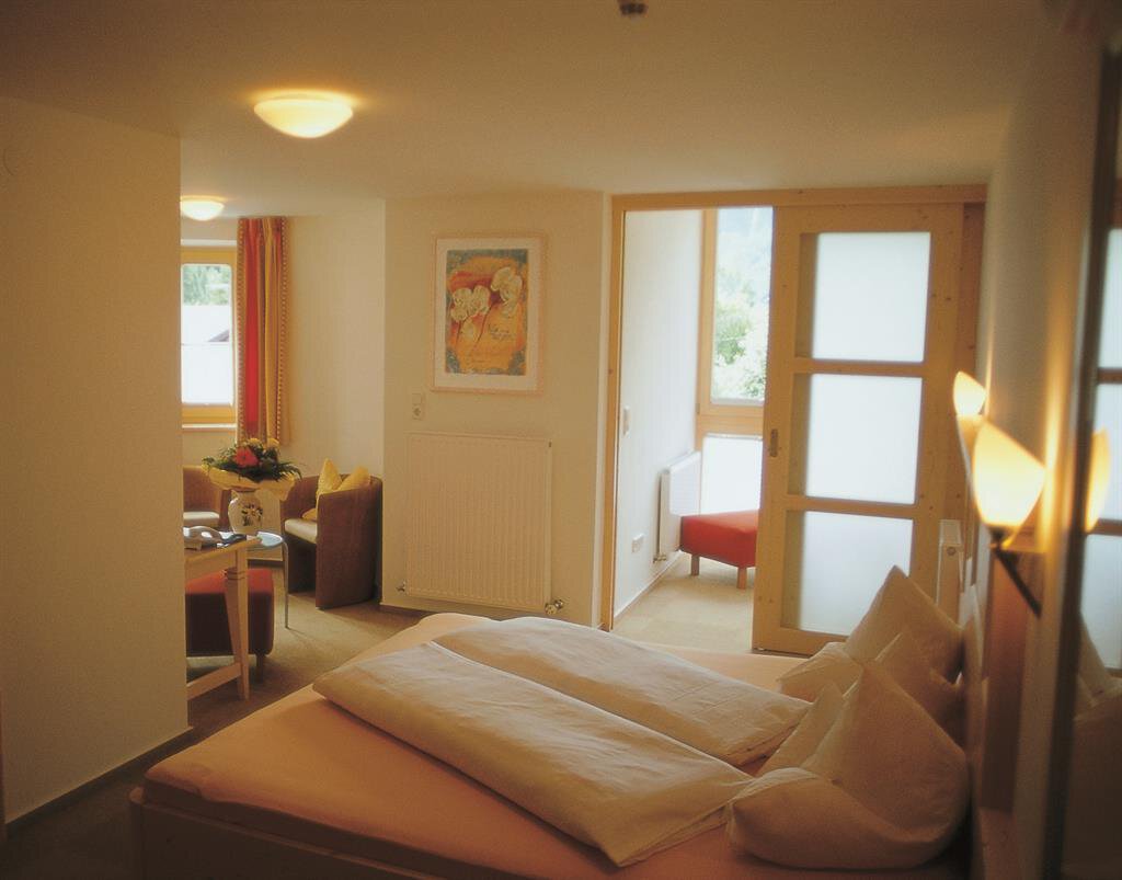The "Hirschen" is a traditional hotel deeply rooted in history, dating back to the year 1590. The family-run business offers a personal atmosphere, all modern comforts, top service and excellent cuisine under one roof. Authentic, wood-paneled Tirolean parlors, à la carte restaurant, favorite menu incl. à la carte half board and health parlor with panorama sauna on the top floor. The hotel can be found right in the center, the bus stop is in front of the house.