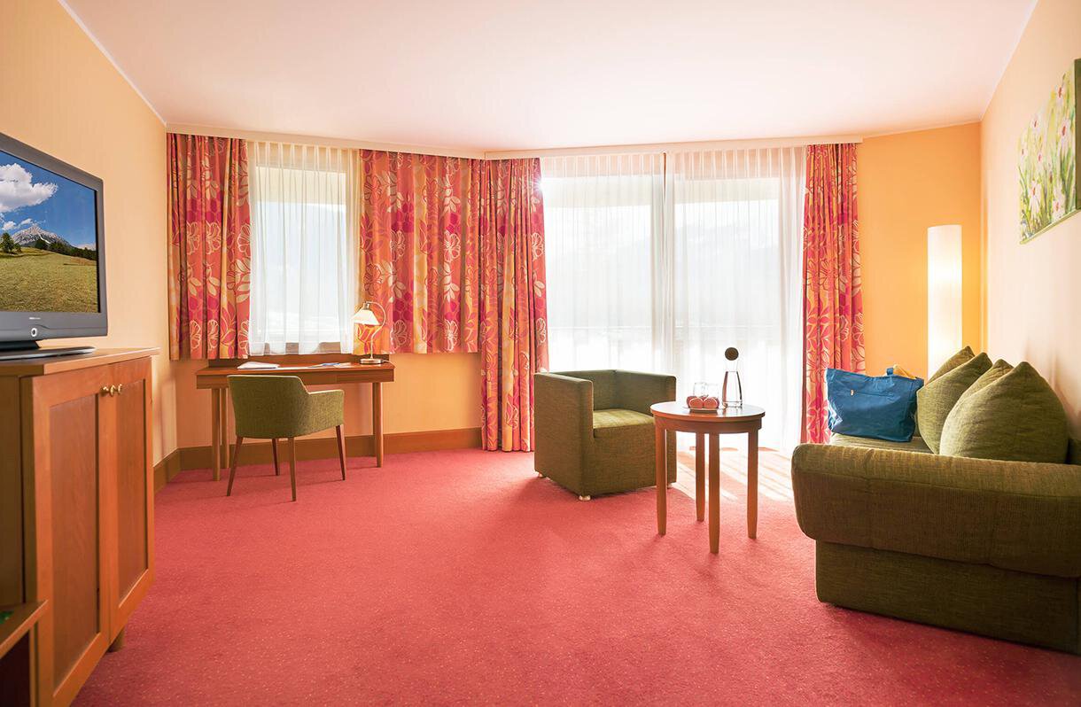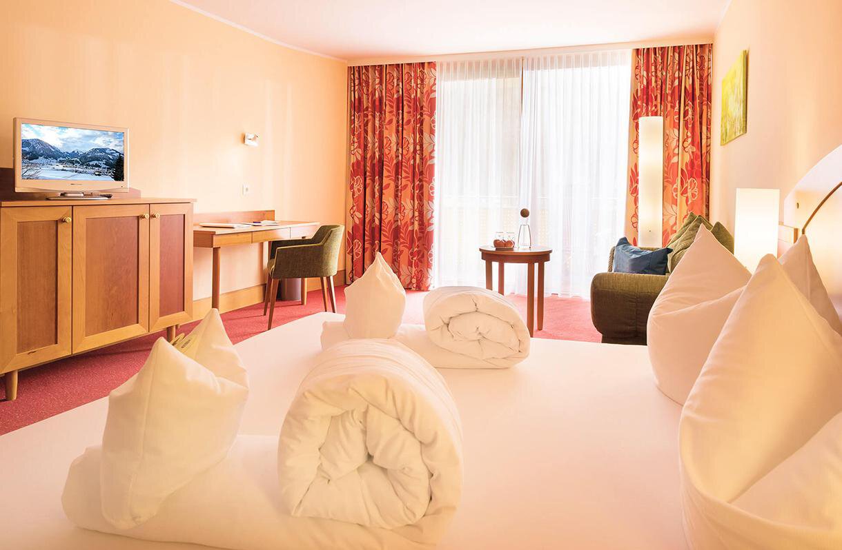 Included: WLAN, free use of the spacious sauna and bath area with heated outdoor swimming pool, bathrobe for the duration of your stay, one free underground parking space per room, versatile entertainment, activity and health program, free use of the fitness room, E-charging station for a fee, lockable bike storage room, free Guest Card for your stay with many benefits: www.oetztal.com/guestcard